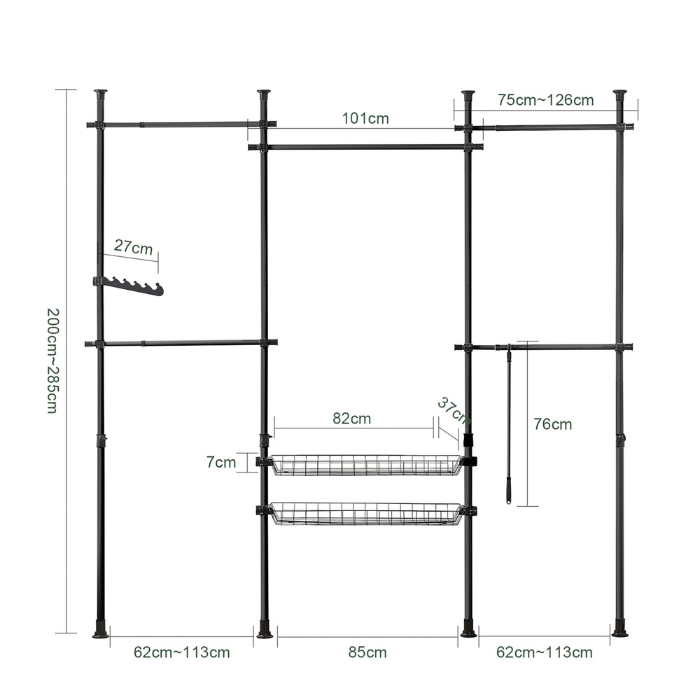 Asennus on helppoa ilman työkaluja tai poraamista - täydellinen ratkaisu pienille tiloille. SoBuy:n vaatejärjestelmä on suunniteltu kestämään arjen haasteet pitkäksi aikaa.