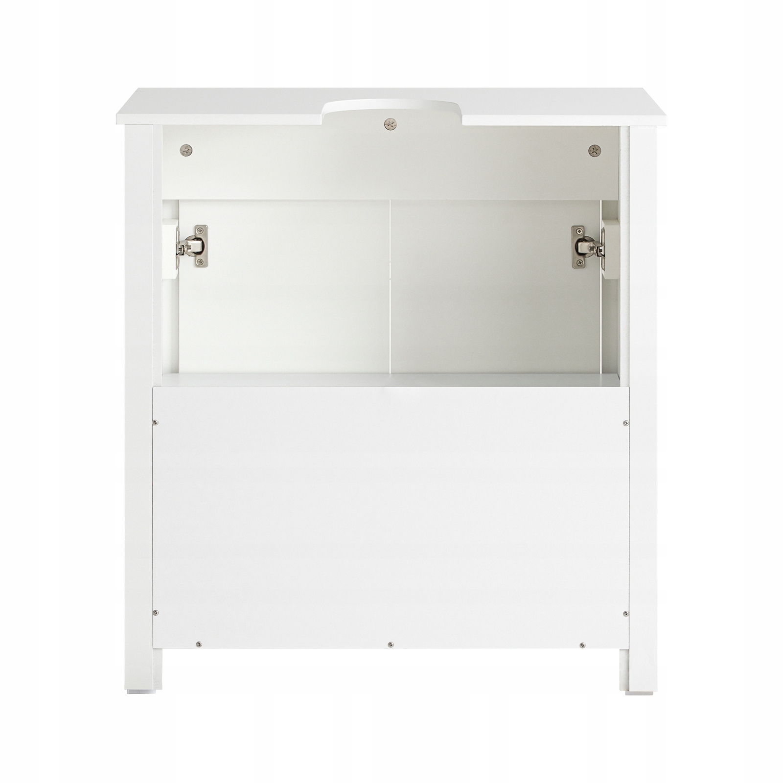 Kaapin U-muotoinen leikkaus mahdollistaa asennuksen pesualtaan alle, jolloin se peittää esteettömästi viemäröinnin. 2-ovinen säilytystila ja avoin hylly tarjoavat runsaasti tilaa kylpyhuonetarvikkeille. Puujalat helpottavat siivousta ja lisäävät design-touhua. Erityiset jalkojen suojalevyt estävät kosteusvaurioita.