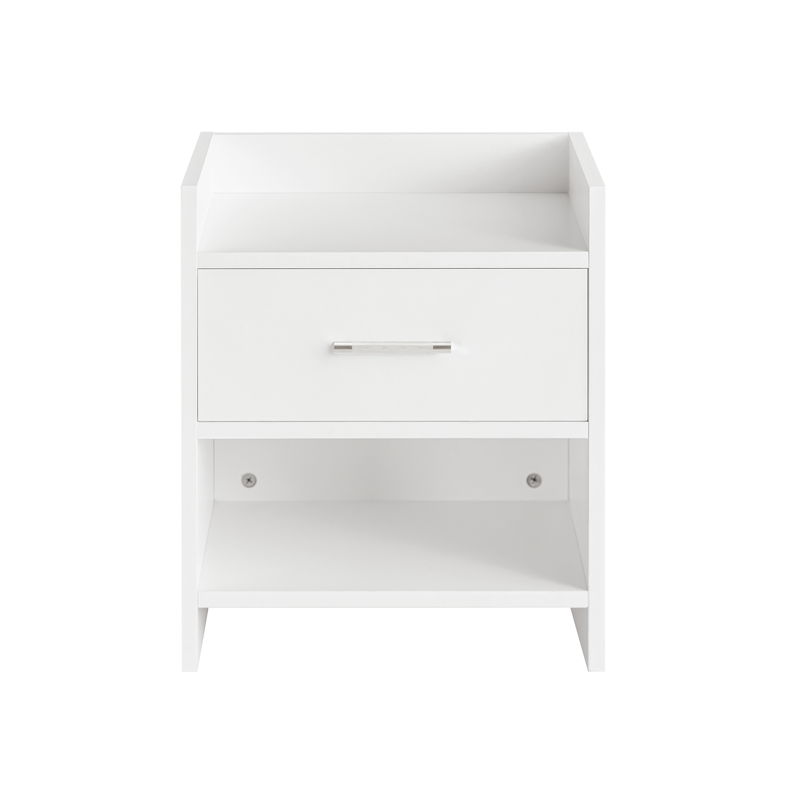 Lipaston älykäs kokoonpano säästää tilaa tehokkaasti, ja se sopii jopa kapeisiin nurkkiin. Ylempi avoin hylly on ihanteellinen yövalolle, kaukosäätimille tai koriste-esineille, kun taas sujuvasti liukuvalla laatikolla voit säilyttää pienet tavarat järjestykseen. Tuote on valmistettu uusiutuvista lastulevyistä ja ympäristöystävällisistä materiaaleista.