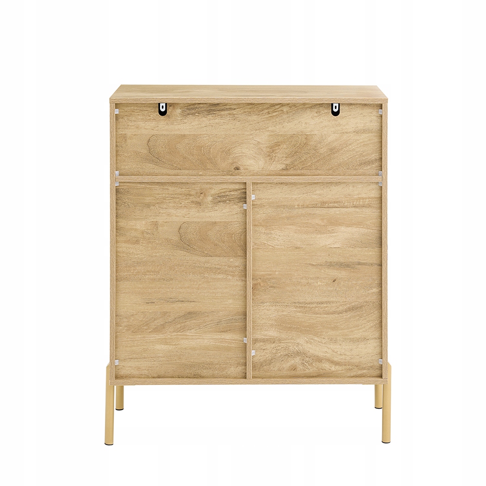 SoBuy-moderni eteiskaappi yhdistää tyylikkään pohjoismaisen designin ja käytännöllisyyden. Luonnolliset sävyt ja kullanhohtoiset peiliovet luovat hienostuneen ilmeen, joka sopii täydellisesti mihin tahansa kotitilaan. Tilava yläpaneeli tarjoaa täydellisen paikan taideteoksille, sisustusesineille tai kasveille.