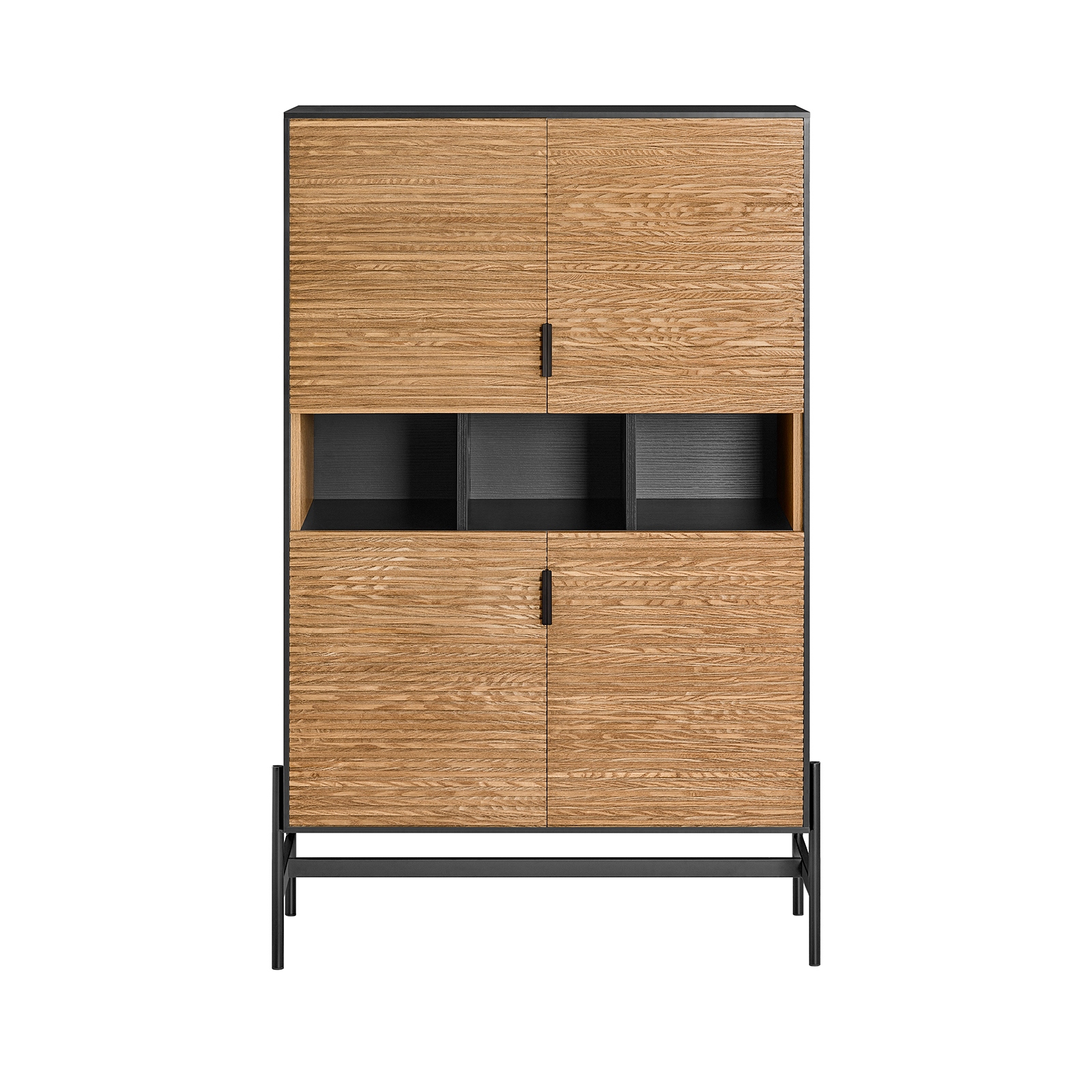 Tämä tyylikäs ja moderni keittiökaappi yhdistää esteettisen muotoilun käytännölliseen toimivuuteen. Neljäovinen kaappi tarjoaa runsaasti säilytystilaa astioille, pöytäliinoille ja ruokailuvälineille.