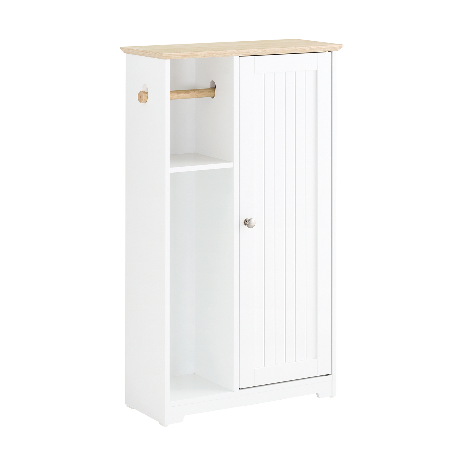 Tämä SoBuyn klassinen valkoinen kylpyhuonekaappi yhdistää ajattoman pohjoismaisen designin ja kestävän toimivuuden. Kaapin yläpinta on luonnonpuuvilla, joka tuo lämpöä ja luonnonkauneutta kylpyhuoneeseesi.