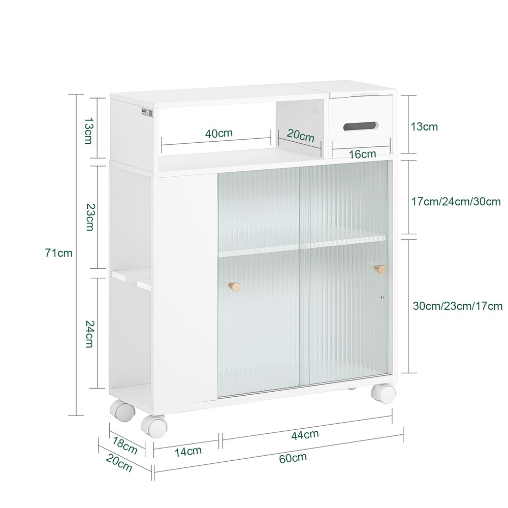 SoBuy WC-paperiteline kylpyhuonekaappi pyörillä valkoinen BZR117-W