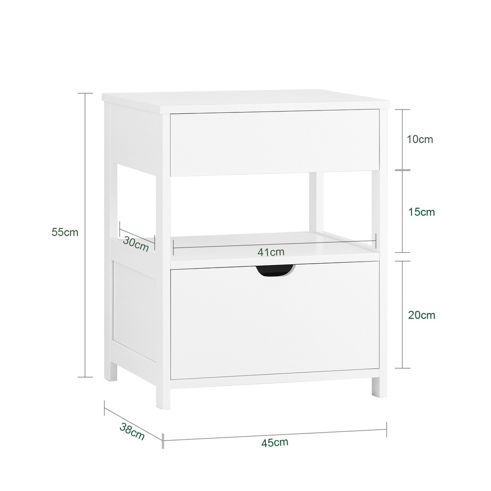 SoBuy Yöpöytä 2-laatikolla ja 1-hyllyllä valkoinen FRG258-II-W