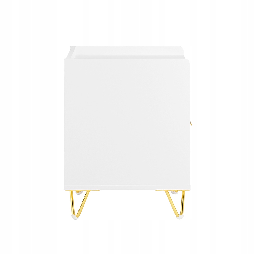Yöpöydässä yhdistyvät tyylikkäät kultametallijalat ja -kahvat käytännölliseen muotoiluun. Vakaa E1-sertifioitu MDF- ja lastulevyrakenne kestää jopa 45 kg kuorman.