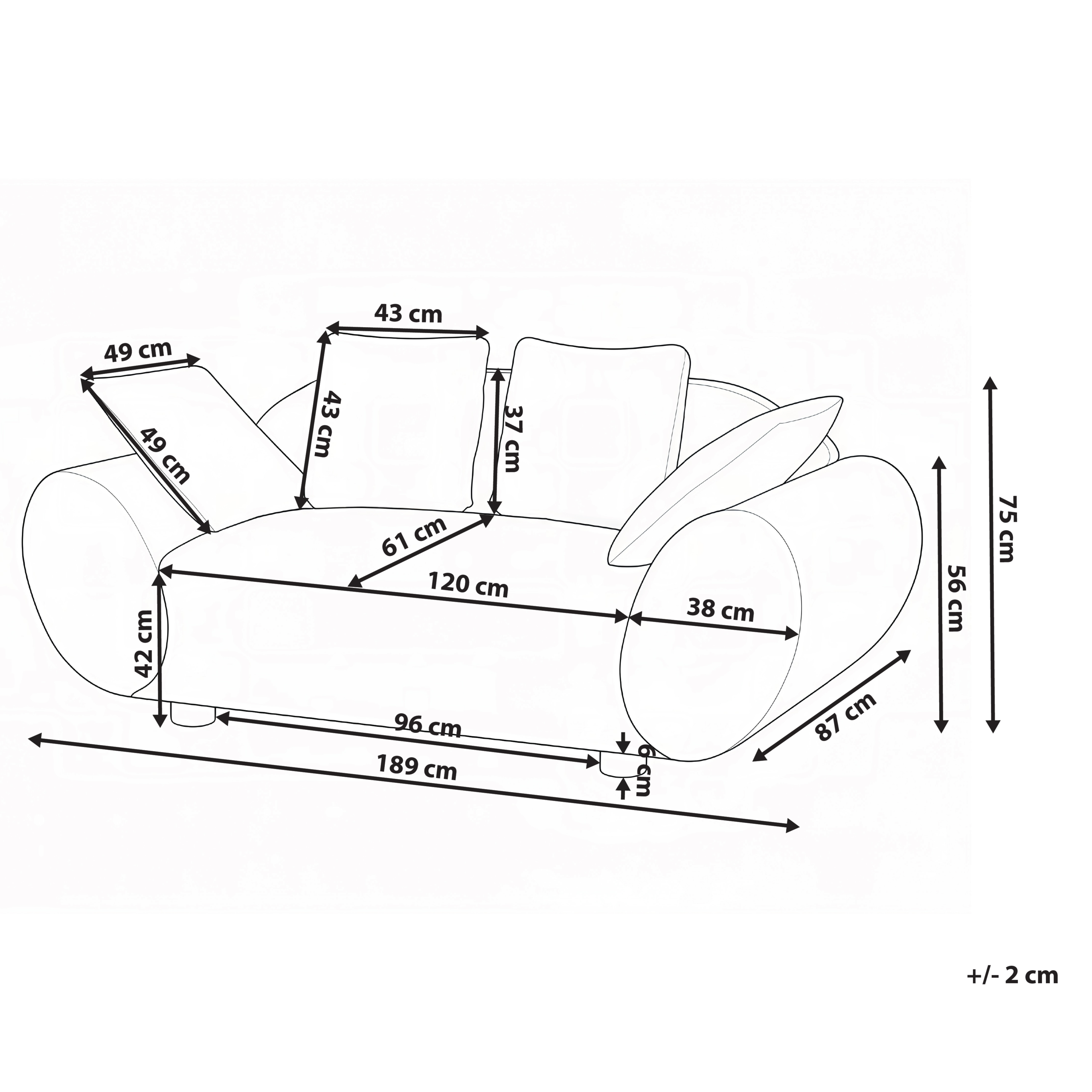 Hintaan sisältyy: 1 x Sohva, Sisältää tyynyt
