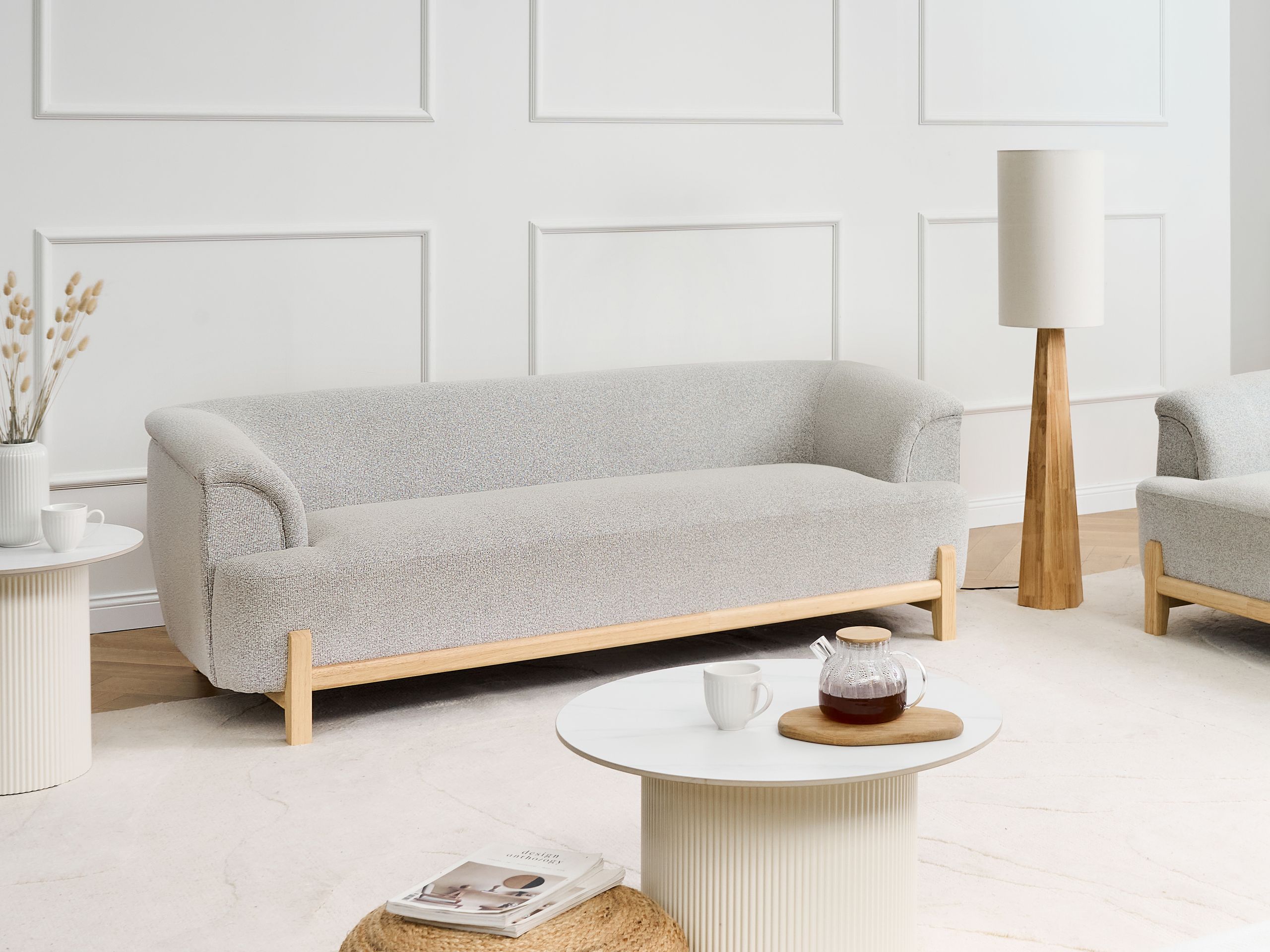 Muhkea sohva leveillä käsinojilla. Tämä tyylikäs 3-istuttava sohva tuo mukavuutta ja eleganssia mihin tahansa moderniin olohuoneeseen. Helppohoitoisella kaksisävyisellä polyesterikankaalla verhoiltu sohva on suunniteltu kestävyyttä ja jokapäiväistä käyttöä varten. Tukevat puujalat ja leveät käsinojat viimeistelevät ilmeen, kun taas sävytetty väri sulautuu saumattomasti monenlaisiin sisustuksiin.