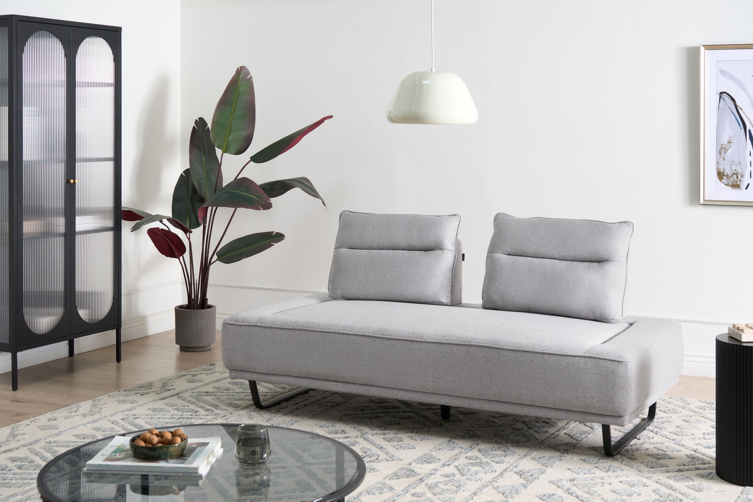Monipuolinen sohva säädettävällä selkänojalla. Tämä moderni 3-istuttava sohva yhdistää tyylin ja toiminnallisuuden – se muuttuu vaivattomasti mukavaksi divaaniksi säädettävän selkänojansa ansiosta. Selkänojan toinen puoli vedetään yksinkertaisesti ylös, liu'utetaan sivulle ja asetetaan sille tarkoitettuun uraan. Tukevat rautatangot pitävät selkänojan tukevasti paikallaan ja tarjoavat vakaan ja rentouttavan istumapaikan. Mukana tulevat tyynyt lisäävät mukavuutta ja käytännöllisyyttä, ja irrotettavat päälliset helpottavat puhdistusta. Pehmeällä kangasverhoilullaan ja minimalistisella muotoilullaan sohva on upea lisä mihin tahansa nykyaikaiseen kotiin.