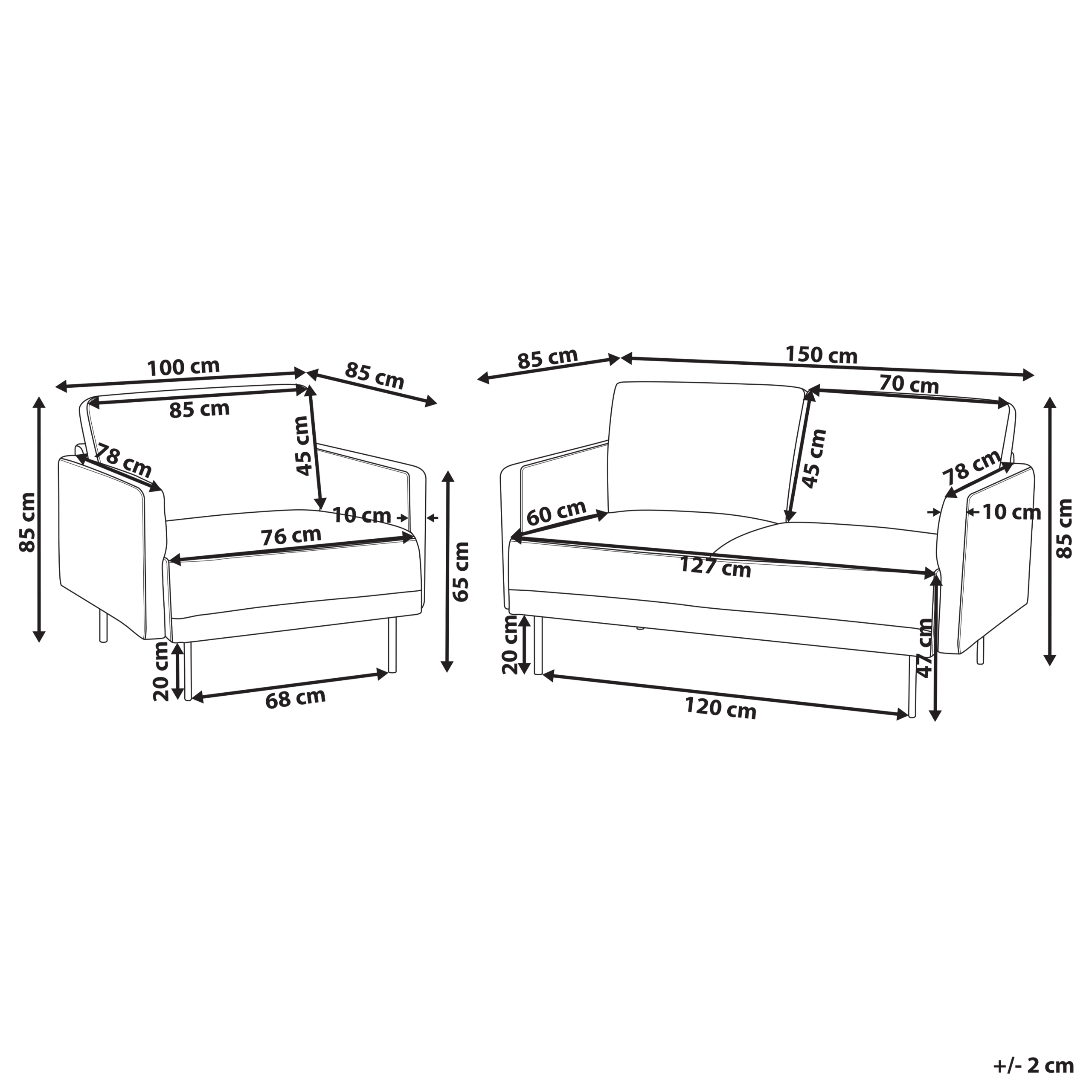 2-istuttavan sohvan mitat: 150x85x85