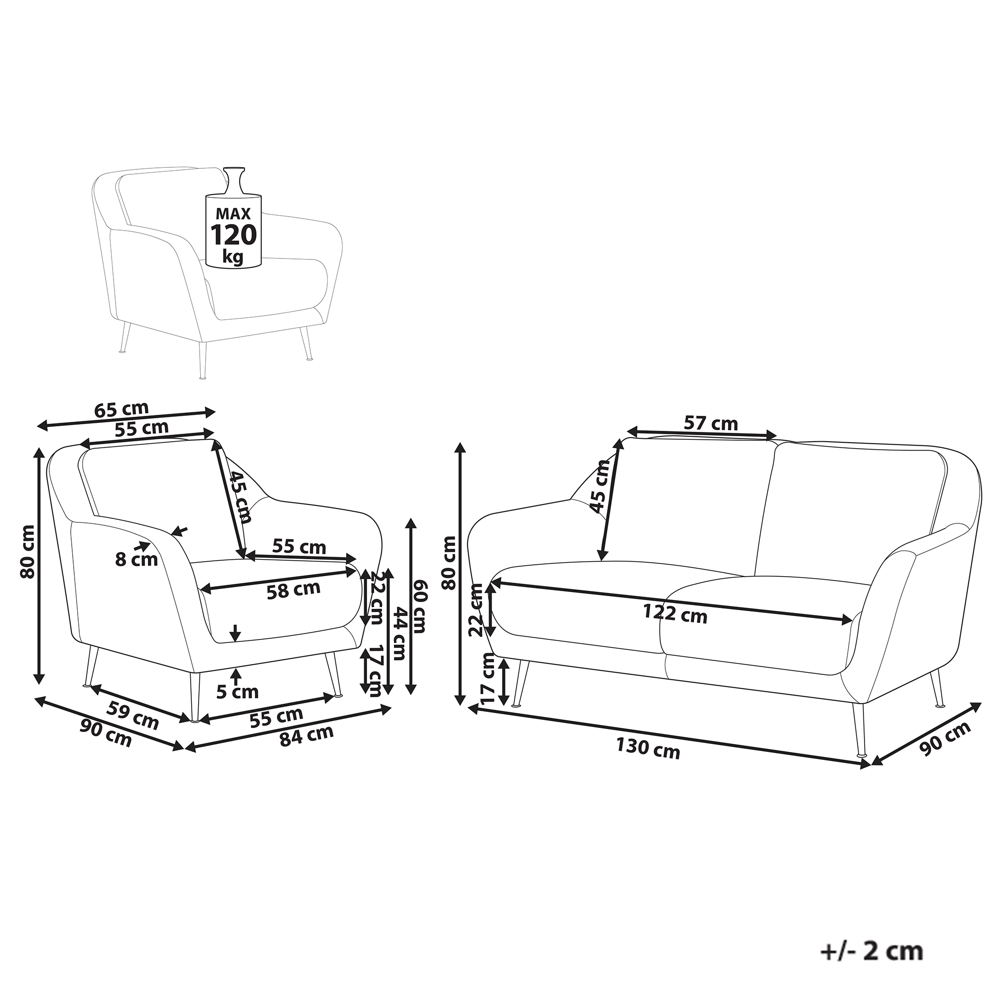 Hintaan sisältyy: 1 x Nojatuoli, 1 x 2-istuttava sohva