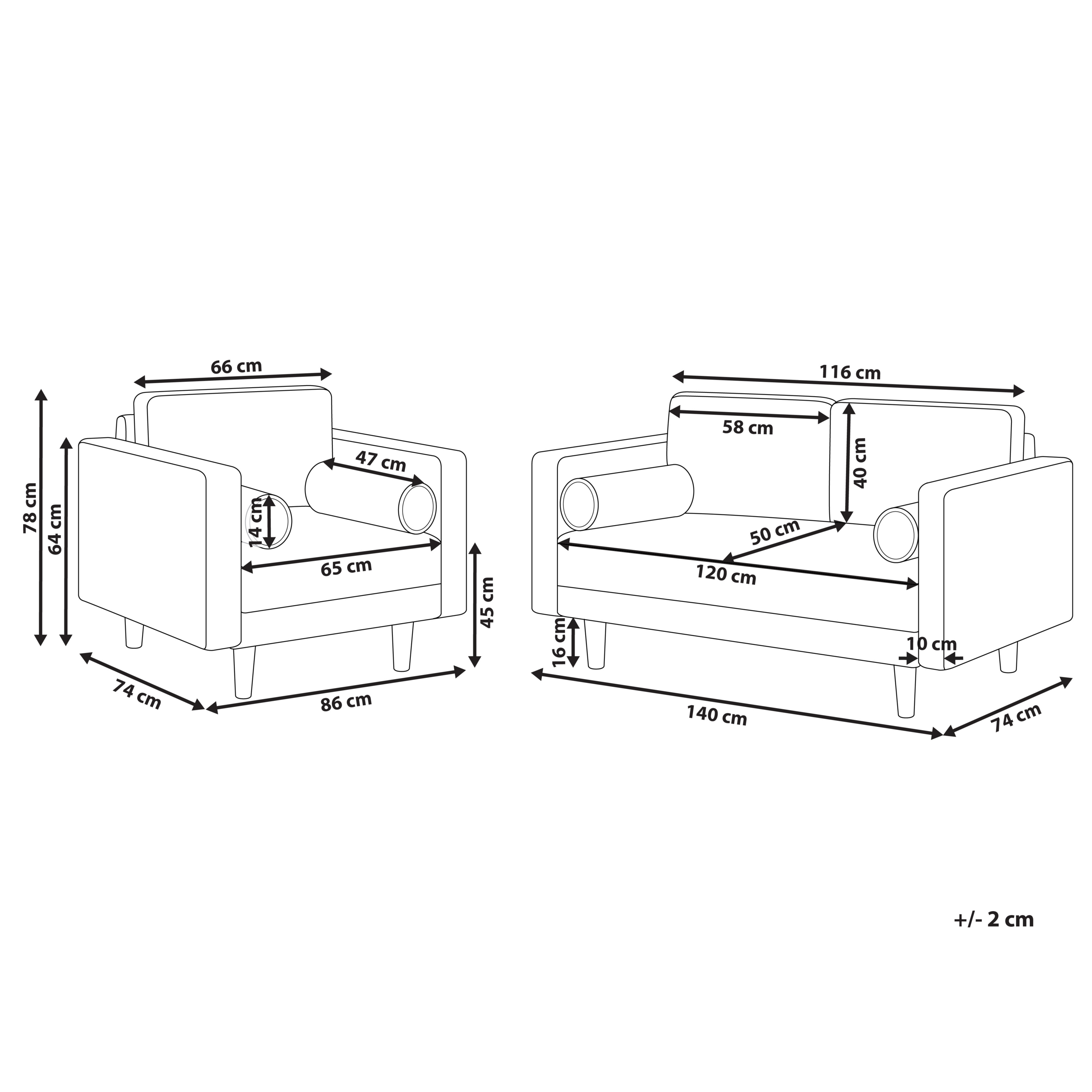 2-istuttavan sohvan mitat: 140x74x78