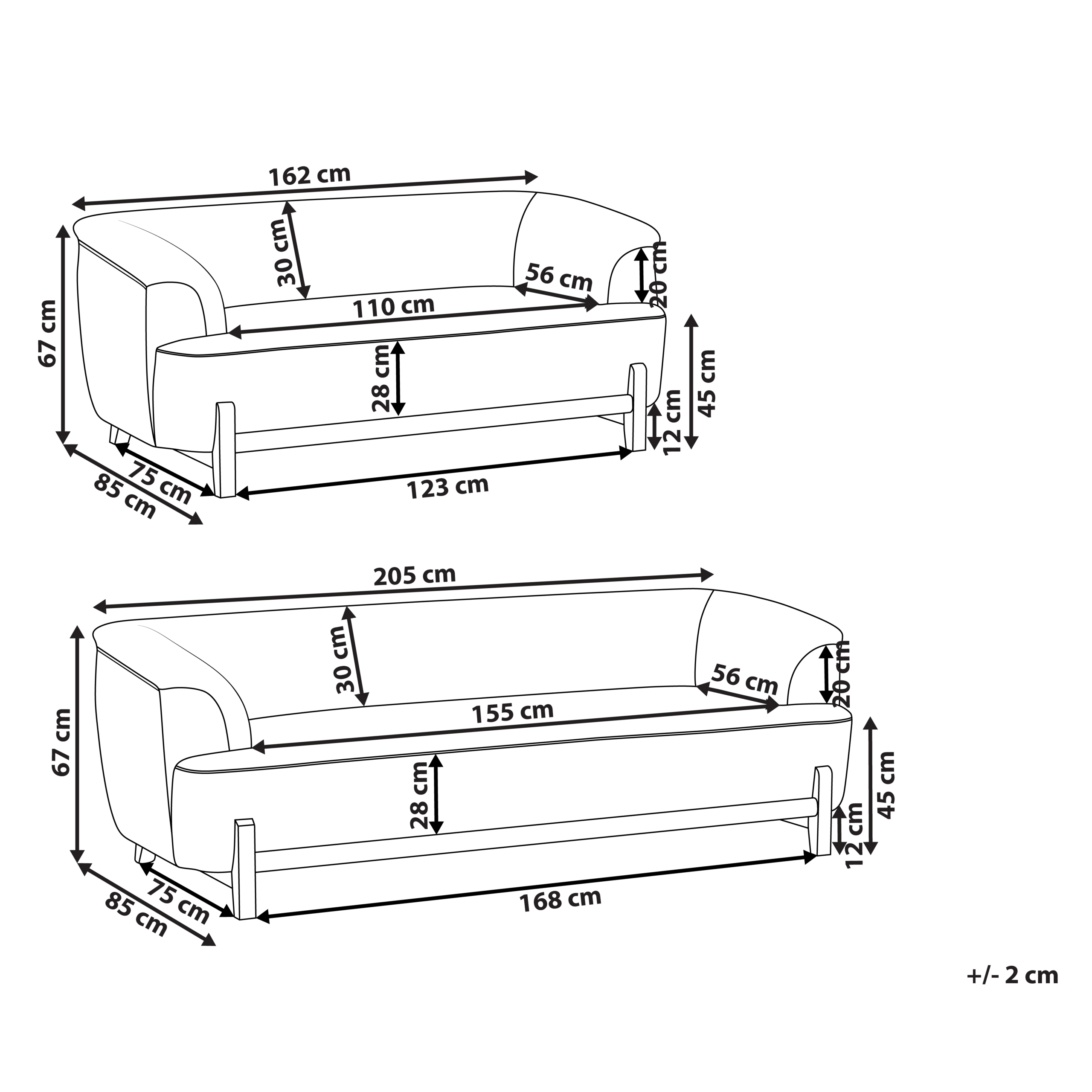 Muhkea sohvasetti leveillä käsinojilla. Tämä tyylikäs 5-istuttava sohvaryhmä tuo mukavuutta ja eleganssia mihin tahansa moderniin olohuoneeseen. Settiin kuuluu 2-istuttava sohva ja 3-istuttava sohva. Helppohoitoisella teksturoidulla chenillekankaalla verhoillut sohvat on suunniteltu kestävyyttä ja jokapäiväistä käyttöä varten. Tukevat puujalat ja leveät käsinojat viimeistelevät ilmeen, kun taas sävytetty väri sulautuu saumattomasti monenlaisiin sisustuksiin.