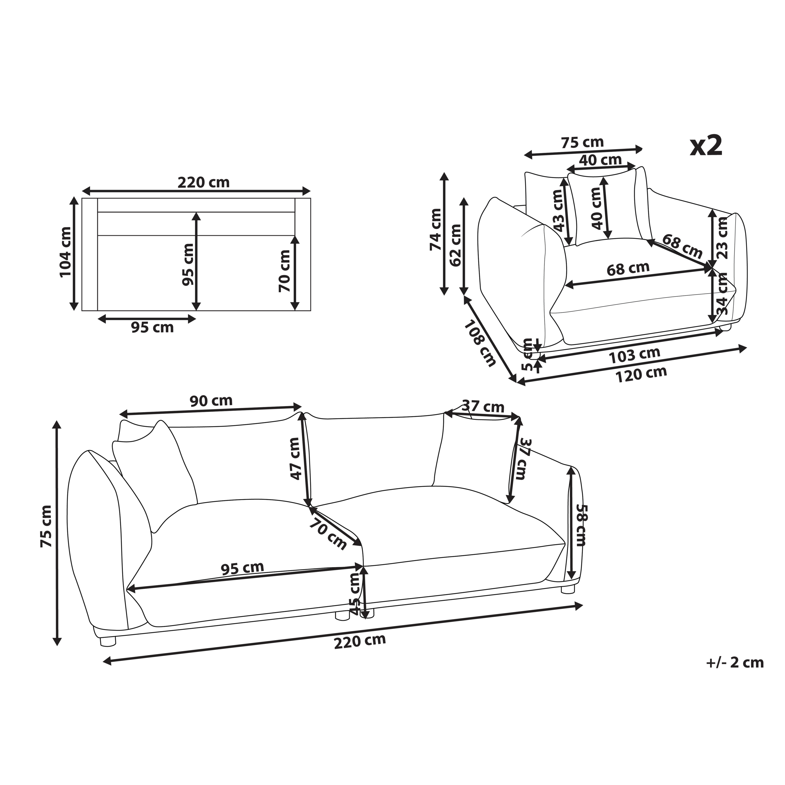 3-istuttavan sohvan mitat: 220x104x75