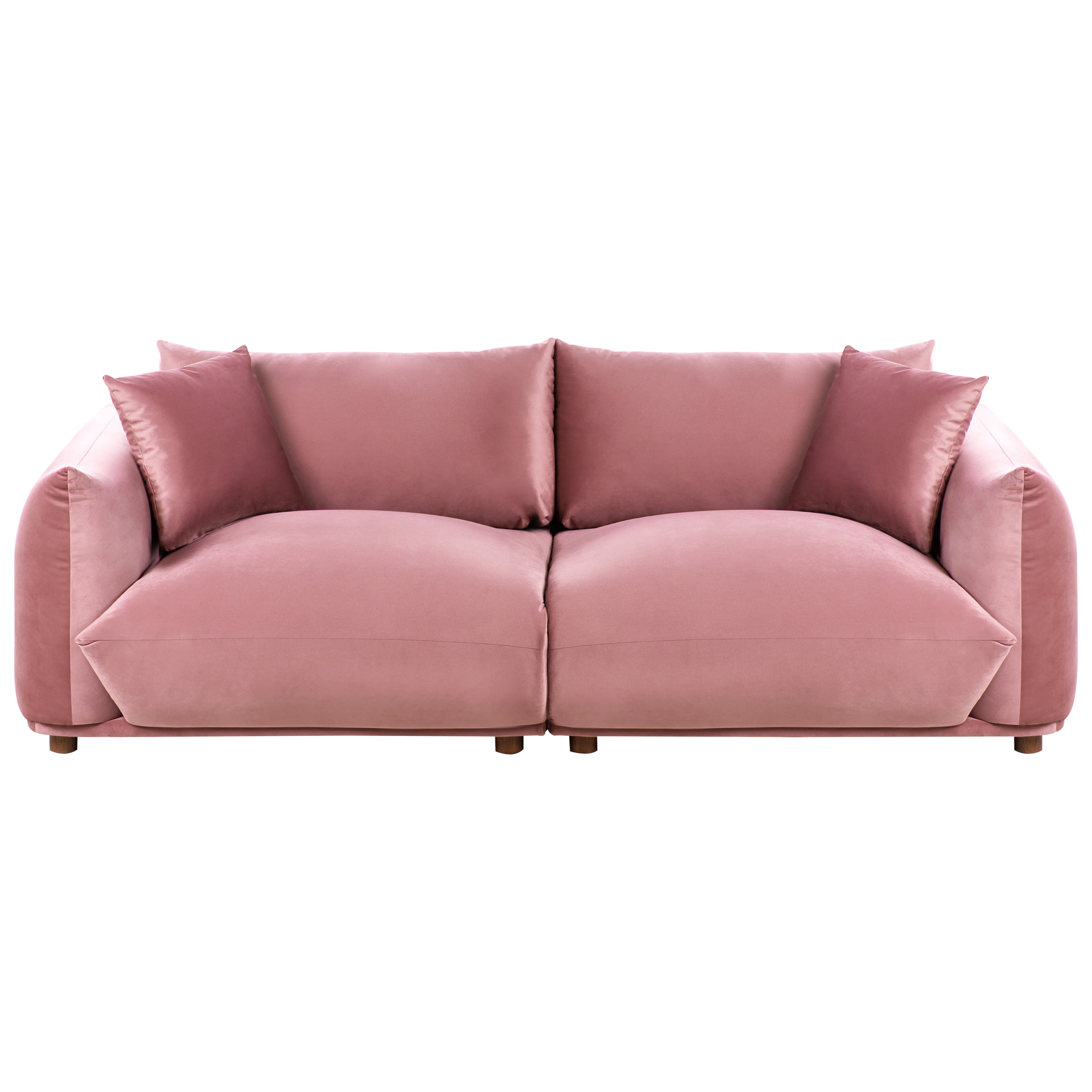 Moderni muhkea sohvaryhmä koristetyynyillä. Kohota olohuoneesi sisustusta ja lisää siihen täydellinen yhdistelmä modernia tyyliä ja mukavuutta tällä sohvaryhmällä, joka sisältää 3-istuttavan sohvan ja kaksi nojatuolia. Kestävällä ja pehmeällä samettikankaalla verhoillut nojatuolit ja sohva huokuvat eleganssia hempeällä vaaleanpunaisella värillään, ja muhkean pehmustuksen ansiosta ne tarjoavat miellyttävän paikan rentoutumiseen. Lyhyet, tukevat kumipuujalat takaavat vakauden ja korostavat syviä, leveitä istuimia. Yhteensopivat koristetyynyt parantavat kalusteiden ulkonäköä ja takaavat ylellisen istumiskokemuksen. Uppoudu mukavuuteen ja tunne, kuinka päivän huolet sulavat pois.
