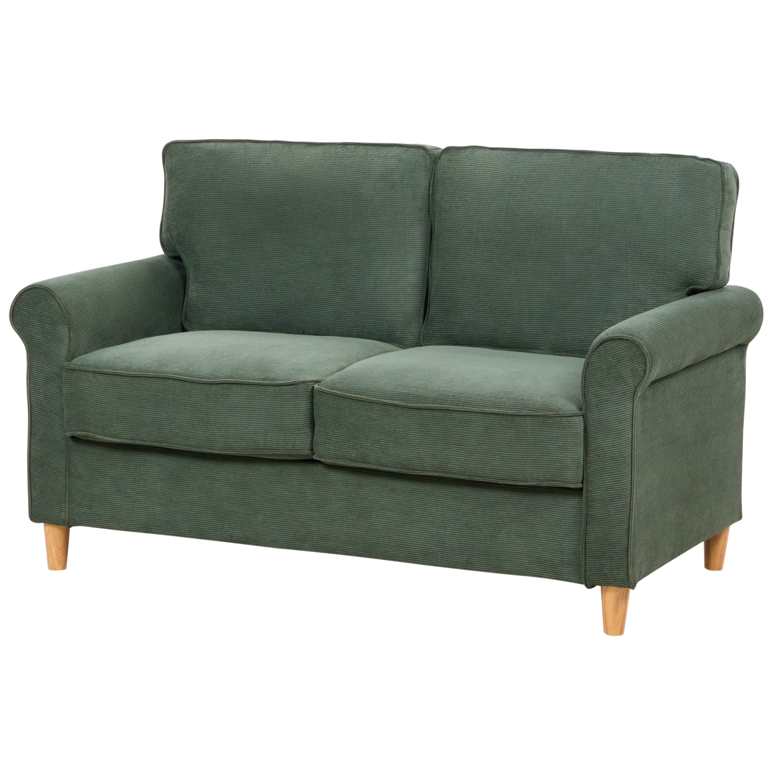 Klassinen retrosohvasetti viidelle. Ajattomasti muotoiltu viiden istuttava sohvaryhmä on ihana valinta niin pieneen kuin suurenkin tilaan. Niiden vankat rungot on verhoiltu pehmeällä, tummanvihreän värisellä vakosametilla. Muhkeat istuin- ja selkätyynyt tarjoavat huippuluokan istumamukavuutta, ja selkätyynyjen päälliset ovat irrotettavissa helppoa puhdistusta varten. Retromuodoista inspiroitunut muotoilu ja tyylikkäät pyöristetyt käsinojat täydentävät erinomaisesti mitä tahansa sisustusta. Lämpimän sävyiset puujalat korostavat kankaan pehmeää väriä ja tuovat tukea.