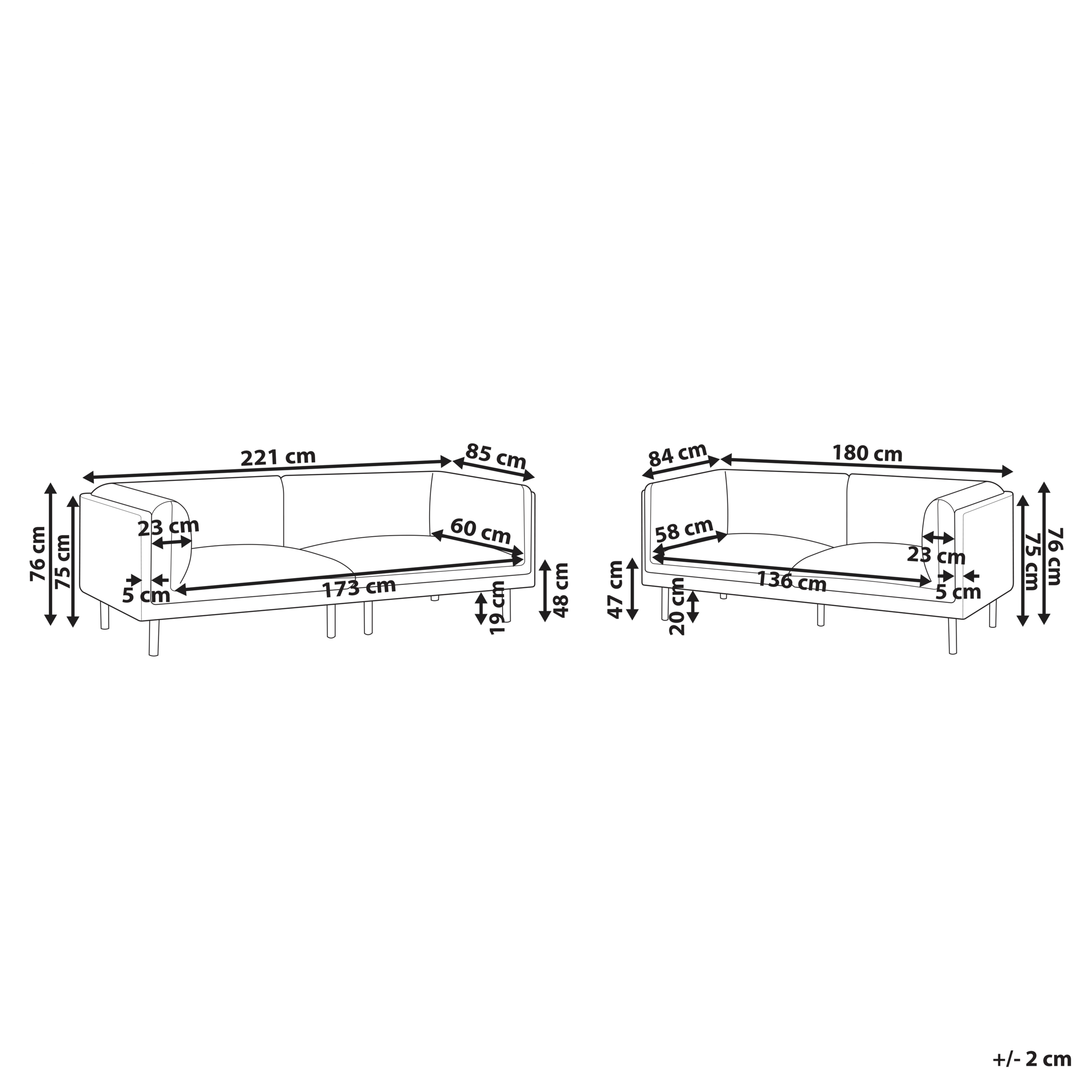2-istuttavan sohvan mitat: 180x84x76