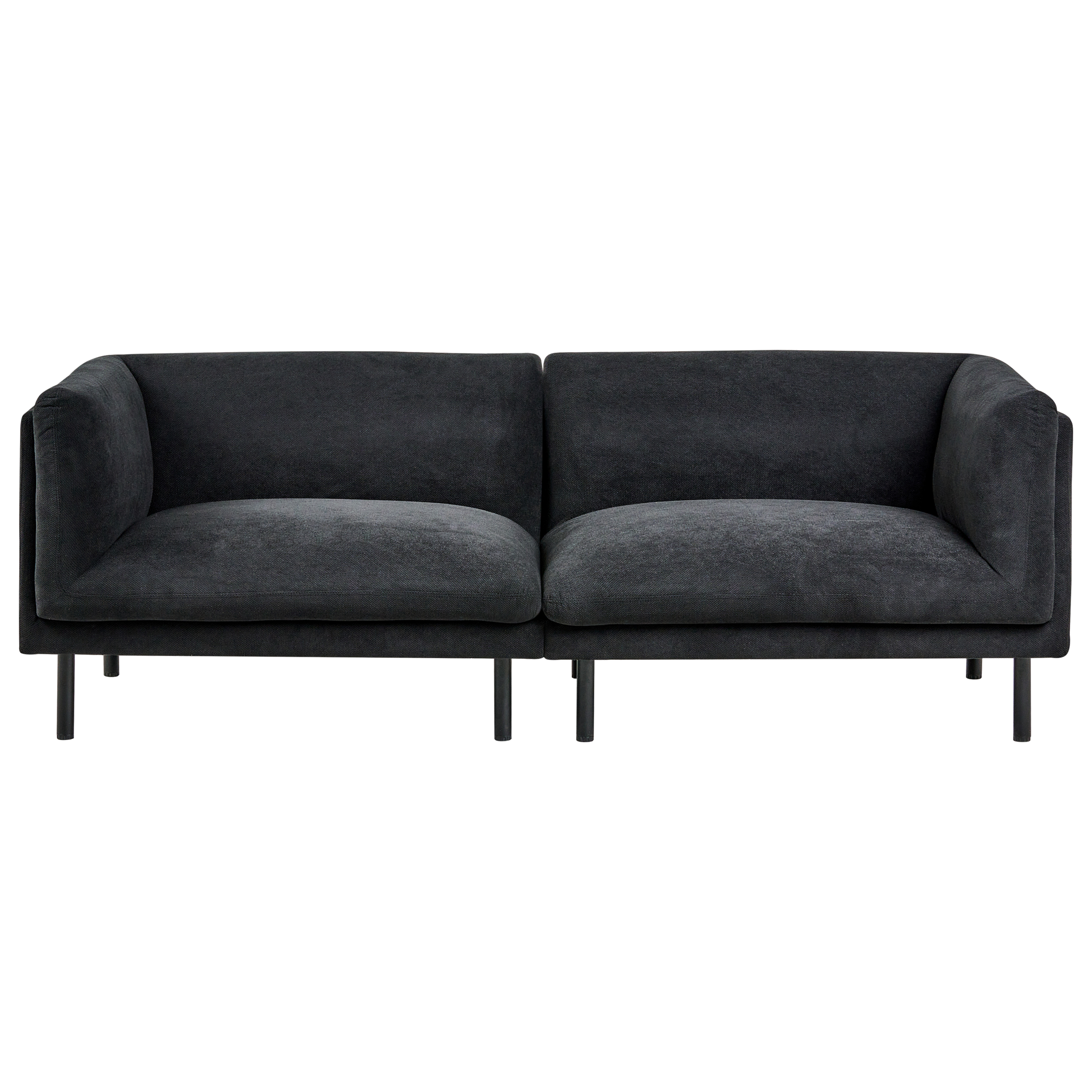 Moderni olohuoneen sohvaryhmä rautajaloilla. Rentoudu tyylillä tällä elegantilla sohvaryhmällä, jossa yhdistyvät moderni muotoilu ja jokapäiväinen mukavuus. Setti sisältää 2- ja 3-istuttavan sohvan, jotka on verhoiltu kokonaan pehmeällä mustalla polyesterikankaalla, joka tarjoaa viihtyisän ja kutsuvan istumakokemuksen. Lisäksi kangas on vettä hylkivä, joten vahingossa tapahtuvat roiskeet pysyvät pinnalla, tehden puhdistamisesta nopeaa ja vaivatonta. Puhtaiden linjojen ja tukevien mustien rautajalkojen ansiosta sohvat ovat tukevia ja sulautuvat saumattomasti mihin tahansa sisustukseen.