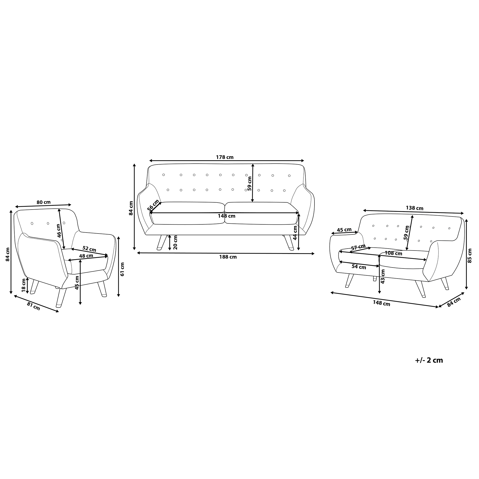 2-istuttavan sohvan mitat: 85x148x84