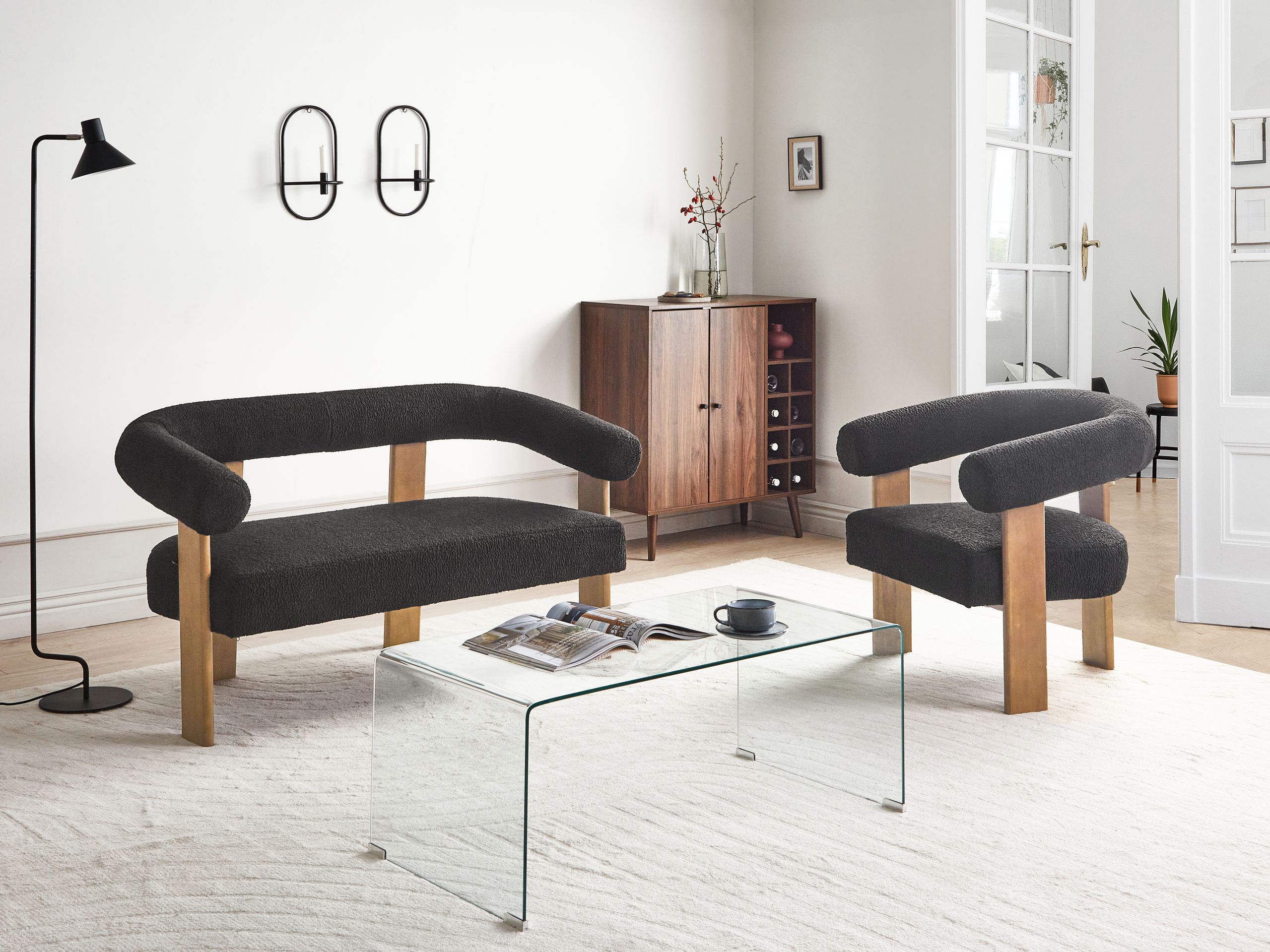Retrotyylinen sohva ja nojatuoli puujaloilla. Tuo olohuoneeseesi ripaus retroviehätystä tällä tyylikkäällä sohvaryhmällä, joka koostuu 2-istuttavasta sohvasta ja nojatuolista. Kalusteet on verhoiltu pehmeällä ja kestävällä bukleekankaalla, joka takaa mukavan istumakokemuksen. Tukevat, kumipuusta valmistetut jalat lisäävät tilaan lämpöä ja luonnontuntua. Sohvasetti tarjoaa täydellisen yhdistelmän käytännöllisyyttä ja tyyliä, ja sen ainutlaatuinen muotoilu täydentää monia sisustustyylejä.