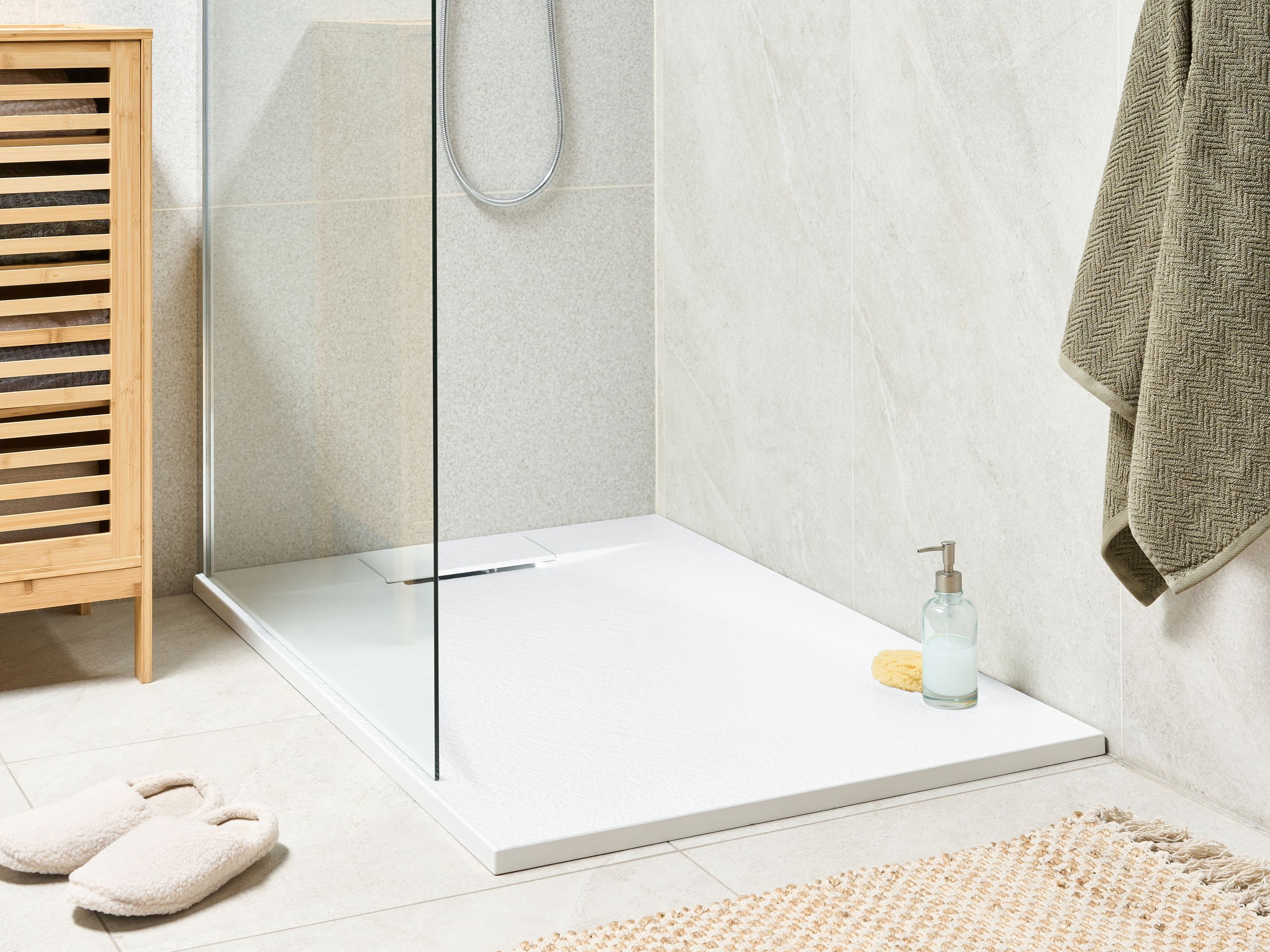 Suorakulmainen suihkuallas luonnonkiviefektillä. Tämä tyylikäs suihkuallas yhdistää kestävyyden ja modernin muotoilun. Se on valmistettu SMC-materiaalista, joka tarjoaa poikkeuksellisen lujuuden, iskunkestävyyden ja pitkäikäisen suorituskyvyn, säilyttäen keveyden ja helpon asennuksen. Teksturoitu pinta parantaa turvallisuutta vähentämällä liukastumisriskiä ja jäljittelee kauniisti luonnonkiven eleganssia. Saumattoman muotoilun ja huomaamattoman viemärisuojan ansiosta se on täydellinen lisä erilaisiin kylpyhuoneisiin.