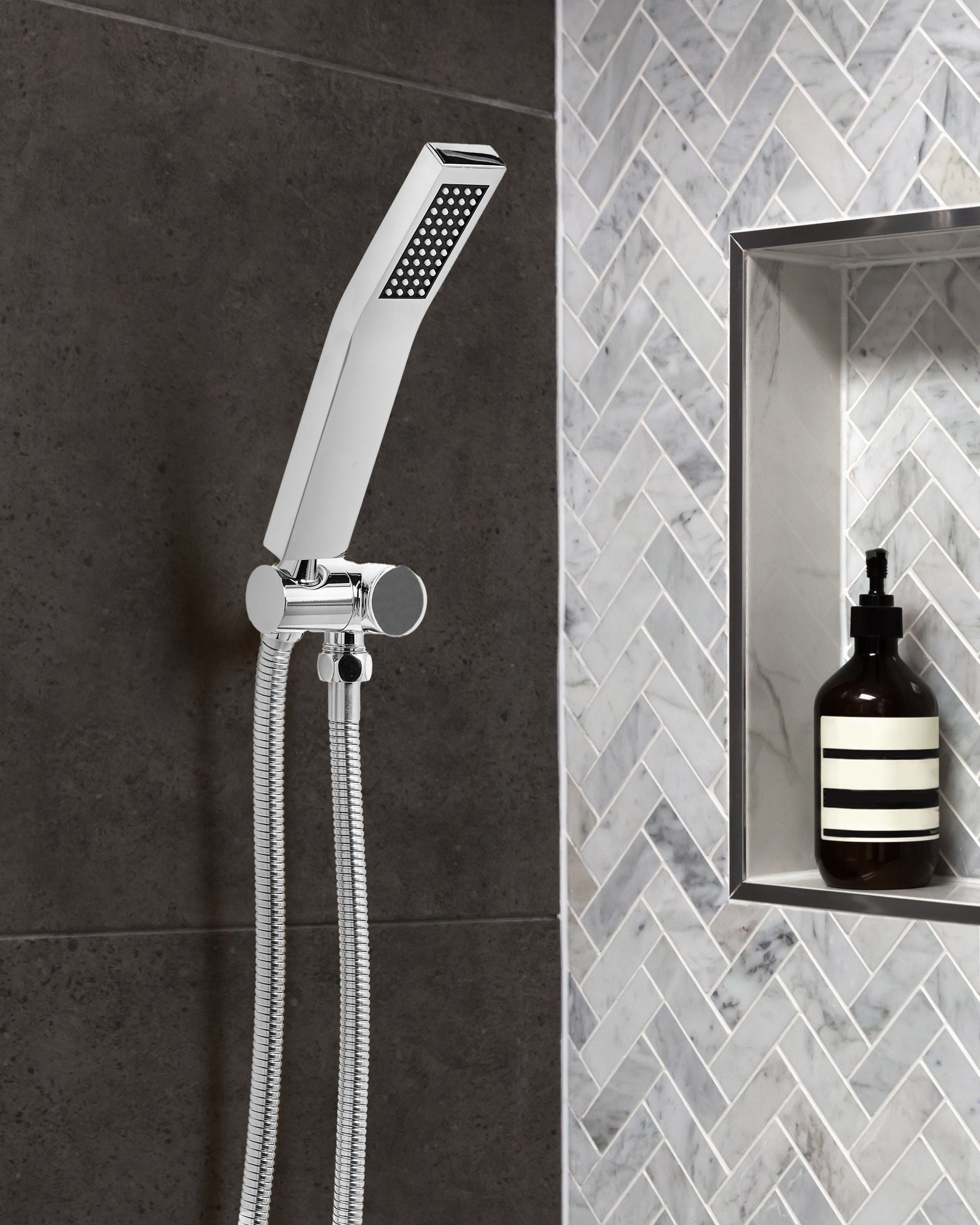 Ominaisuudet: Sopii standardiletkuihin, Käytännöllinen käsisuihku, Kumisuuttimet helpottavat kalkinpoistoa, Moderni muotoilu, Korkealaatuinen