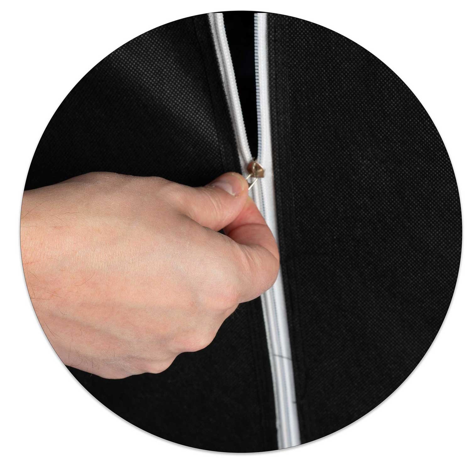 <p>Käytännöllinen ja toimiva suojus (vetoketjulla) varastohyllystöille mustana, joka suojaa pölyltä ja muilta epäpuhtauksilta seuraavissa tiloissa:</p>