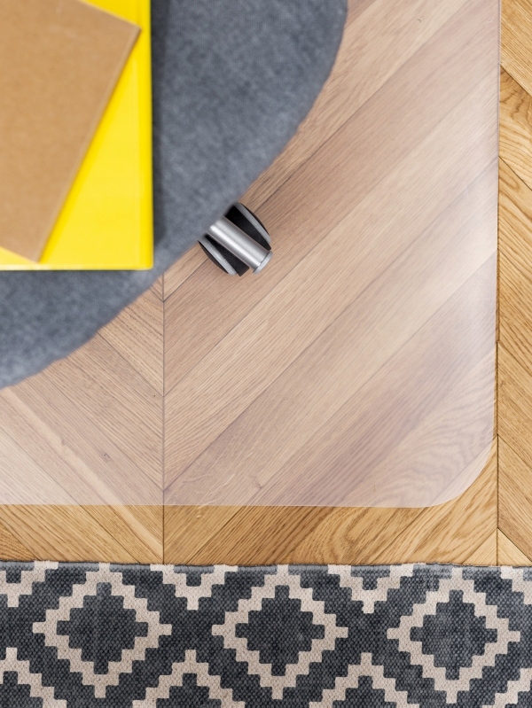 Läpinäkyvä alusta nojatuolille, MultiDecor-yrityksen tuolille suojaa meidän puulattiaa, paneeleja tai laattoja naarmuilta tuolin tai nojatuolin liikkumisen seurauksena. Se hyvin tarttuu alustaan, ja suurten mittojen ansiosta voi vapaasti liikkua tuolilla sen alueella. Kestävä kaikenlaisia tahroja ja helppo pitää puhtaana.