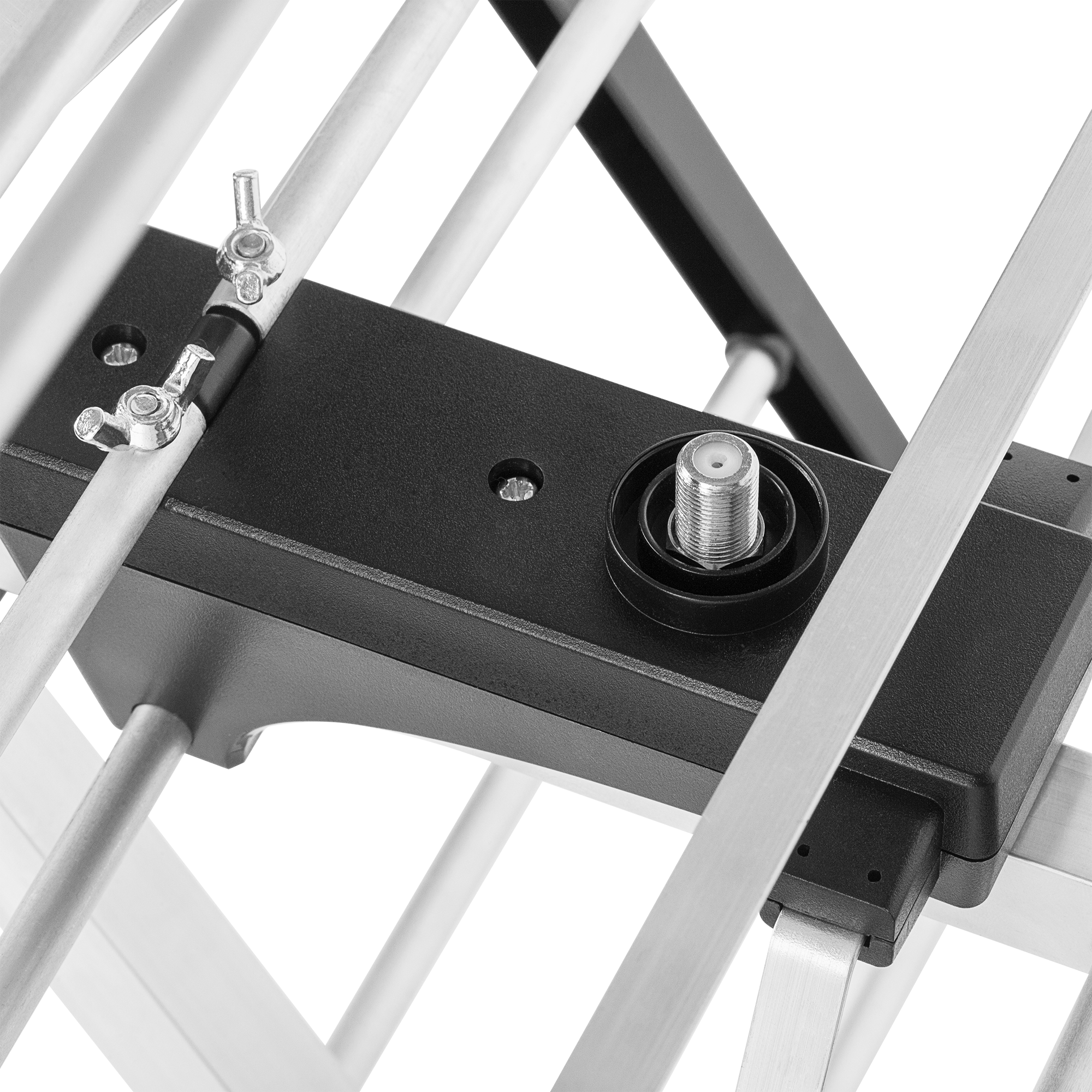 Cabletechin suuntaava ulkokäyttöön tarkoitettu TV-antenni on laite, jonka avulla voit vastaanottaa DVB-T- ja DVB-T2-digitaalimaanpäällistä televisiota pitkiltä etäisyyksiltä, jopa vaikeassa maastossa, jossa on paljon häiriöitä. Antenni toimii VHF 174-230 MHz ja UHF 470-790 MHz -taajuusalueilla varmistaen korkealaatuisten signaalien asianmukaisen vastaanoton, jotta voit nauttia suosikki-tv-sarjojesi tai -elokuviesi erinomaisesta kuvan- ja äänenlaadusta.
