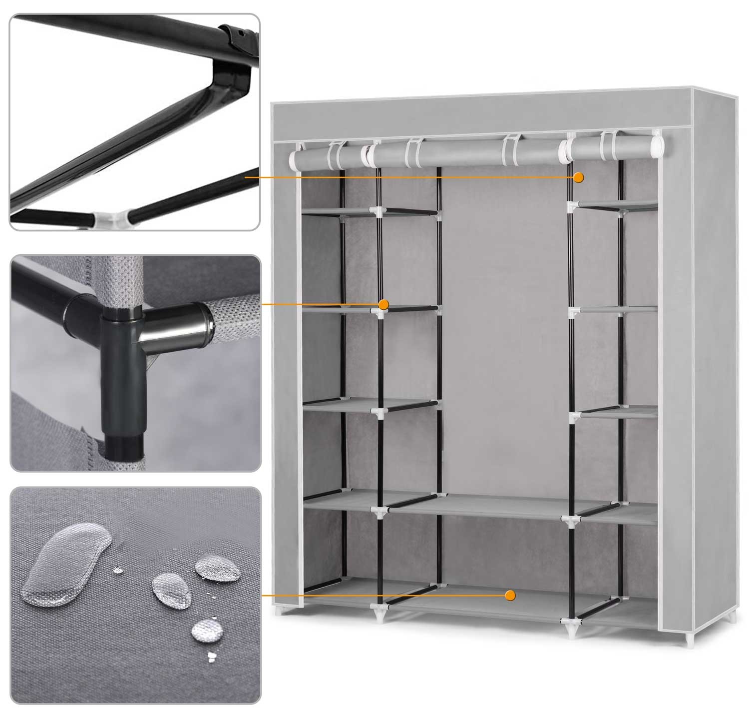 Suuri Massido-tekstiilivaatekaappi - harmaa
