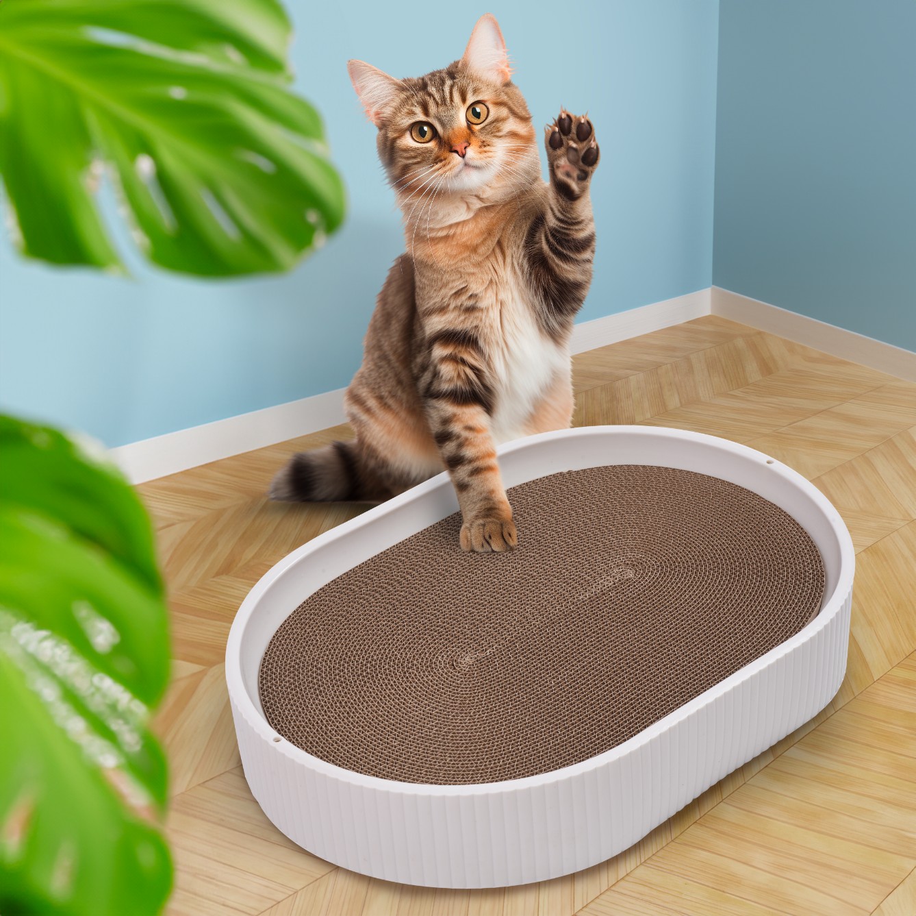 Suuri raapimapuu, jonka runsaasti pahvia kannustaa kissasi käyttämään sitä. Sen avulla kissasi voi ylläpitää kynsihygieniaa teroittamalla kynsiään säännöllisesti.