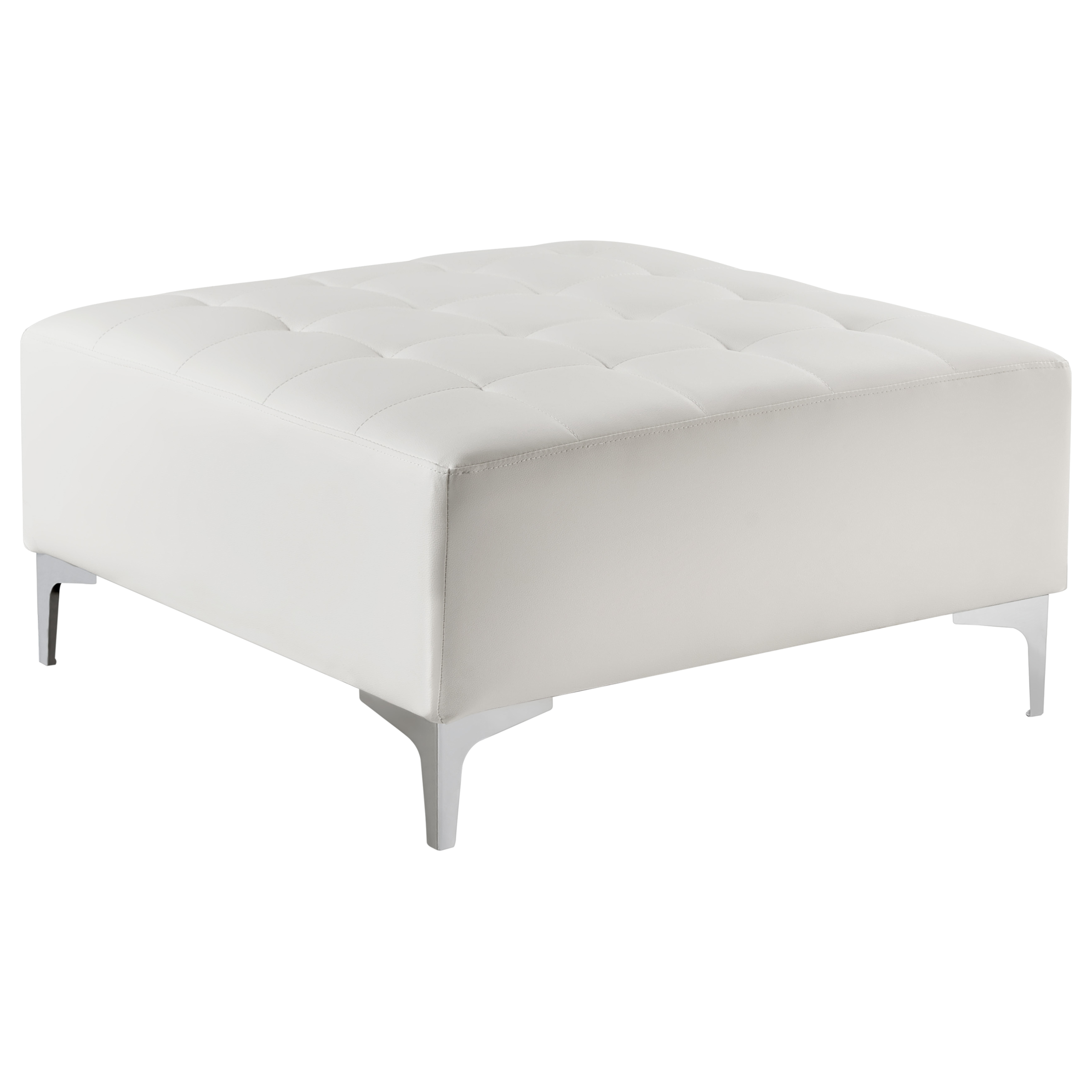 Moderni tuftattu rahi. Puhtaat linjat ja mukavuus ovat tämän suuren rahin ominaisia piirteitä. Sen runko on verhoiltu kokonaan korkealaatuisella keinonahalla ja viimeistelty tyylikkäällä tuftauksella. Raikas valkoinen väri sopii useisiin sisustuksiin ja värimaailmoihin. Muotoilunsa ansiosta se voidaan yhdistää malliston muihin kalusteisiin sopivan istuinkokonaisuuden luomiseksi. Se on erittäin vakaa hopeanväristen metallijalkojensa ansiosta. Rahi toimii loistavasti sekä lisäistuimena, jalkatukena että sivupöytänä.