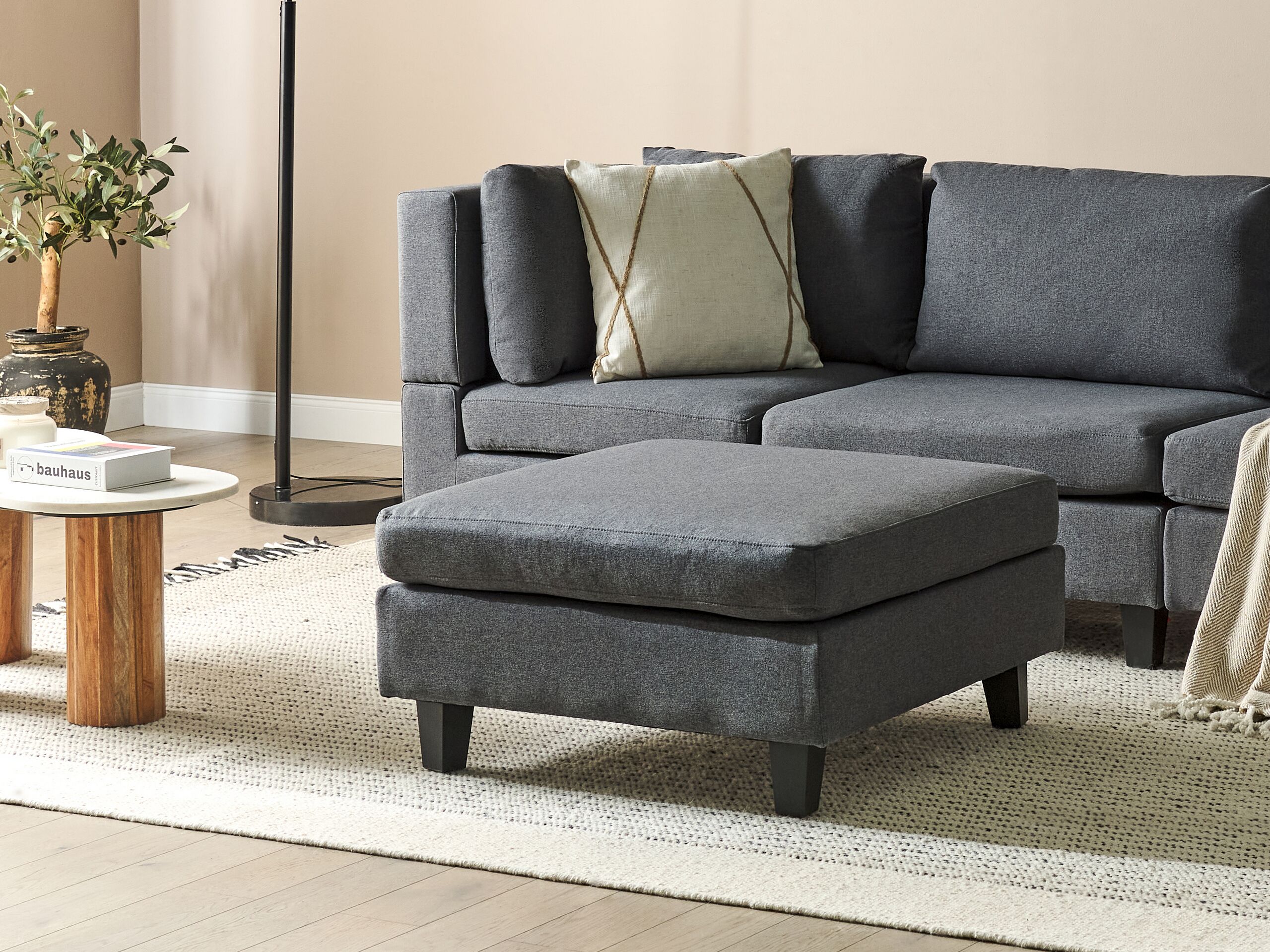 Skandinaavinen suuri rahi. Tämä rahi on upea, monikäyttöinen lisä jokaiseen olohuoneeseen. Sitä voidaan käyttää niin ylimääräisenä istuimena, jalkatukena kuin myös moduulisohvan osana. Miellyttävän tuntuisella polyesterikankaalla verhoiltu suuri rahi on erittäin kestävä. Paksusti pehmustettu istuinosa tarjoaa erinomaisen istumamukavuuden. Koko rakenne on vakaa leveiden mustien jalkojen ansiosta.