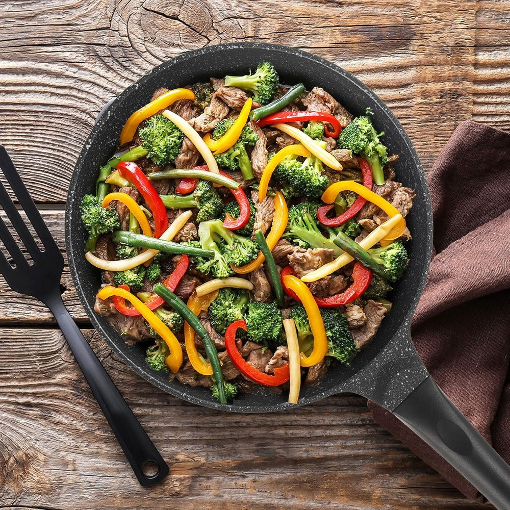 TALOUDELLINEN - Tämä paistinpannu varmistaa nopean ja tasaisen paistamisen, mikä säästää energiaa. Se sopii erinomaisesti paistamiseen ja hauduttamiseen, ja sitä voidaan käyttää erilaisten liharuokien, vihannesten ja jopa yhden padan aterioiden valmistukseen.