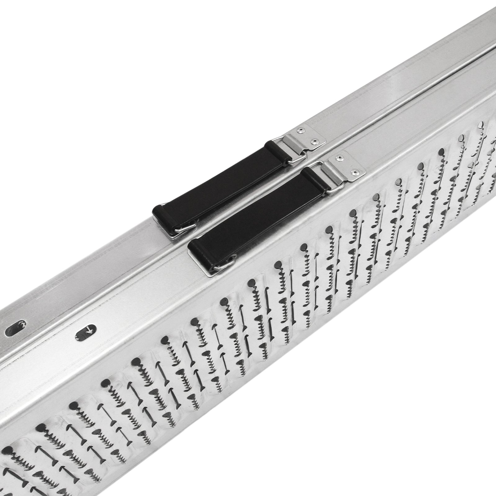Vakauden ja turvallisuuden varmistamiseksi mukana tulee kaksi ilmaista räikkähihnaa, joilla rampit kiinnitetään perävaunuun tai pakettiautoon ennen käyttöä. Kun olet valmis, tämä kätevä laite taittuu kompaktiin kokoon – täydellinen säilytykseen pakettiauton lavalla! Jos tämä ei vielä ollut erinomaista, siinä on myös kaksi kahvaa, joiden avulla voit kantaa ramppejasi helposti.