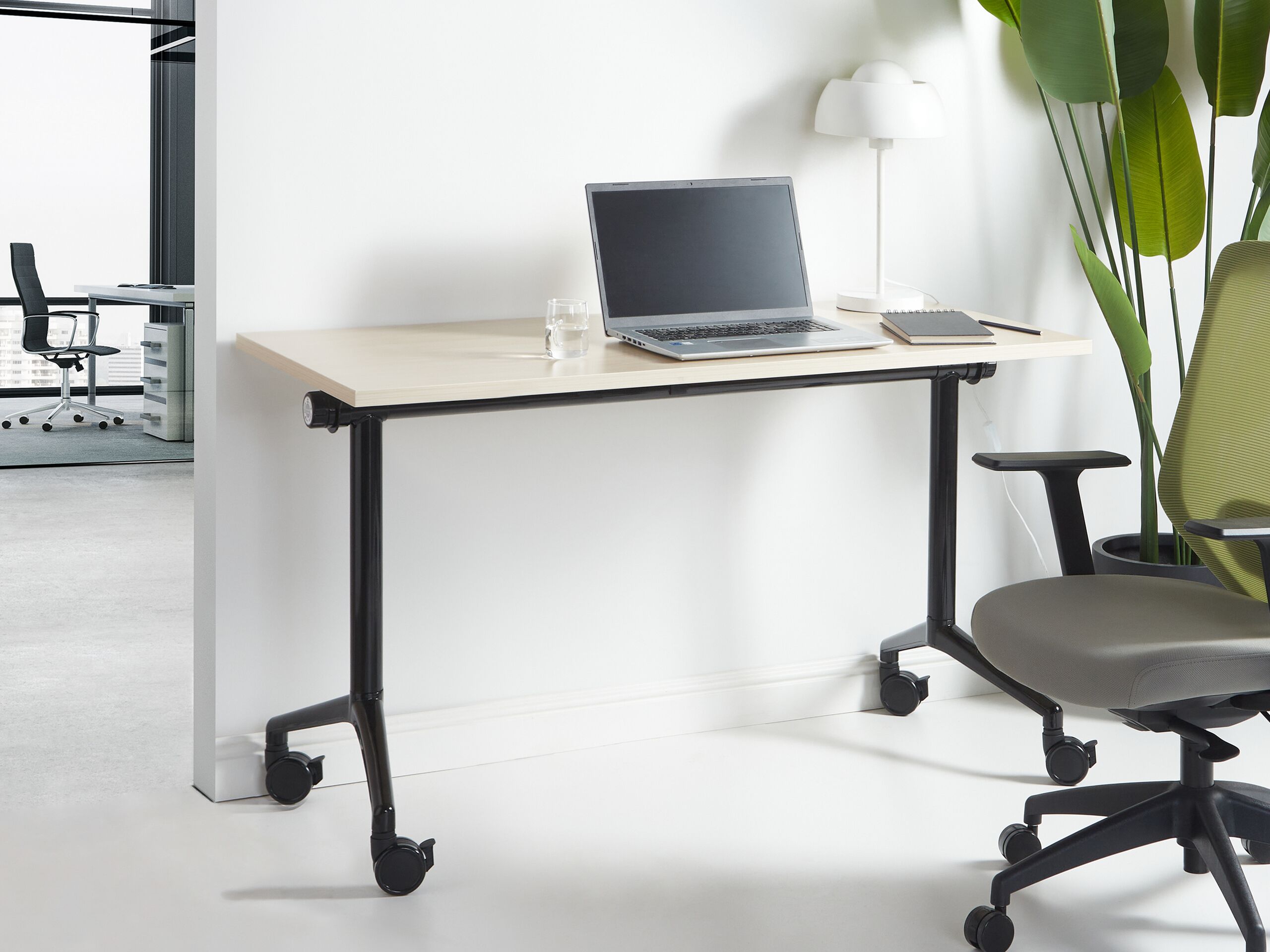 Kätevä taitettava toimistopöytä pyörillä. Tee työtilasta käytännöllinen ja tyylikäs tällä työpöydällä. Taitettava pöytälevy mahdollistaa helpon säilytyksen silloin, kun sitä ei tarvita. Lukittavat kääntöpyörät tarjoavat liikkuvuuden, jolloin työpistettä voi siirtää paikasta toiseen tarpeen mukaan. Toimistopöytä sopii erinomaisesti sekä pieniin että suurin kotitoimistoihin, tarjoten modernin ja toimivan ratkaisun.