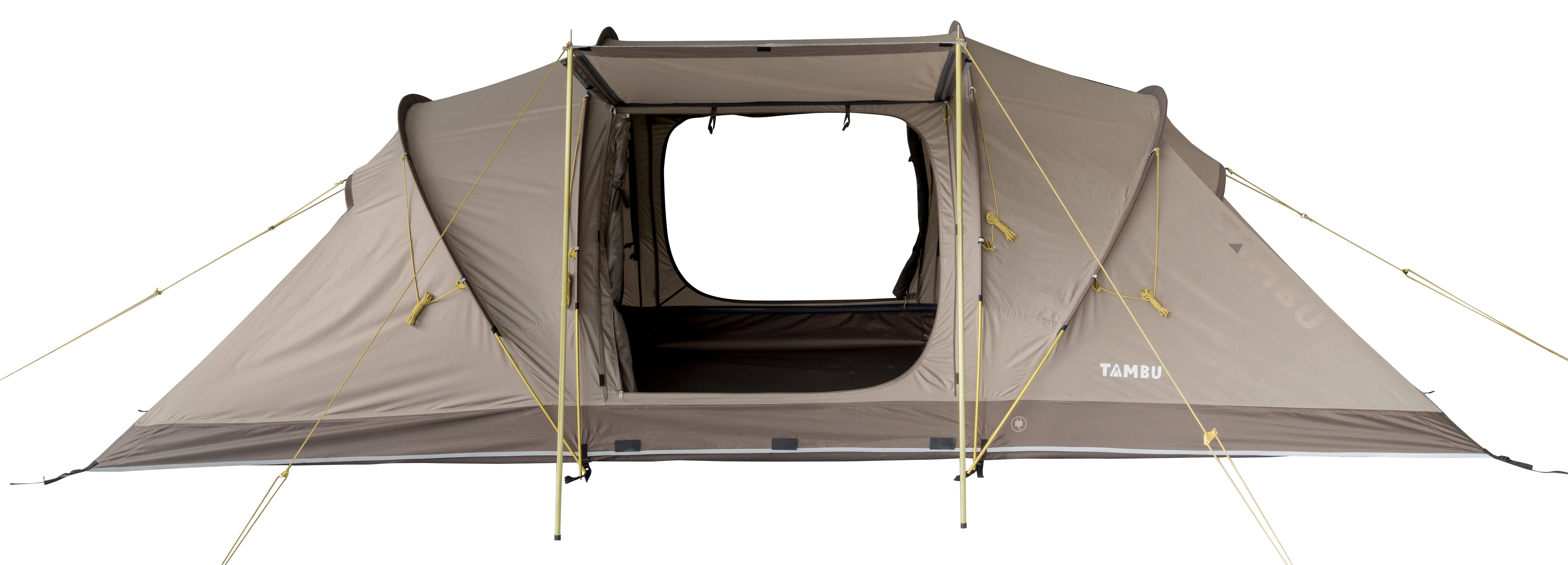 AGNIKUNDA-teltta TAMBUlta on huolellisesti suunniteltu trekking- ja retkeilyteltta perheille, pareille tai ystäville, jotka arvostavat matkalla tilavuutta, selkeää tilanjakoa ja mukavuutta. Vastakkain sijoitetut makuukabiinit luovat yksityisyyttä ja muodostavat suojaisan keskialueen, joka sopii erinomaisesti yhteiseen oleskeluun, varusteiden säilytykseen tai ruoanlaittoon huonolla säällä.