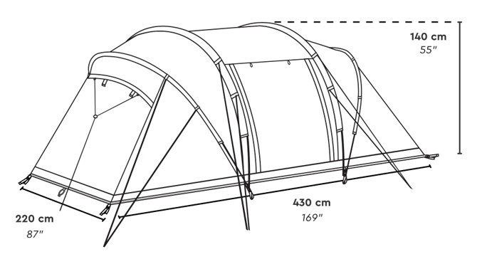 Ulkomitoiltaan noin 430 × 220 × 140 cm oleva AGNIKUNDA tarjoaa runsaasti tilaa ilman, että se tuntuu kömpelöltä. Molemmat makuukabiinit ovat kooltaan noin 210 × 140 × 130 cm ja tarjoavat mukavasti tilaa kahdelle hengelle kumpikin. Niiden väliin jää noin 3,5 m²:n suuruinen keskiosan oleskelu- ja säilytystila, jossa voi istua, vaihtaa vaatteita tai säilyttää varusteita myös sateella. Tarvittaessa toisen makuukabiinin voi irrottaa helposti, jolloin oleskelutila kasvaa entisestään.