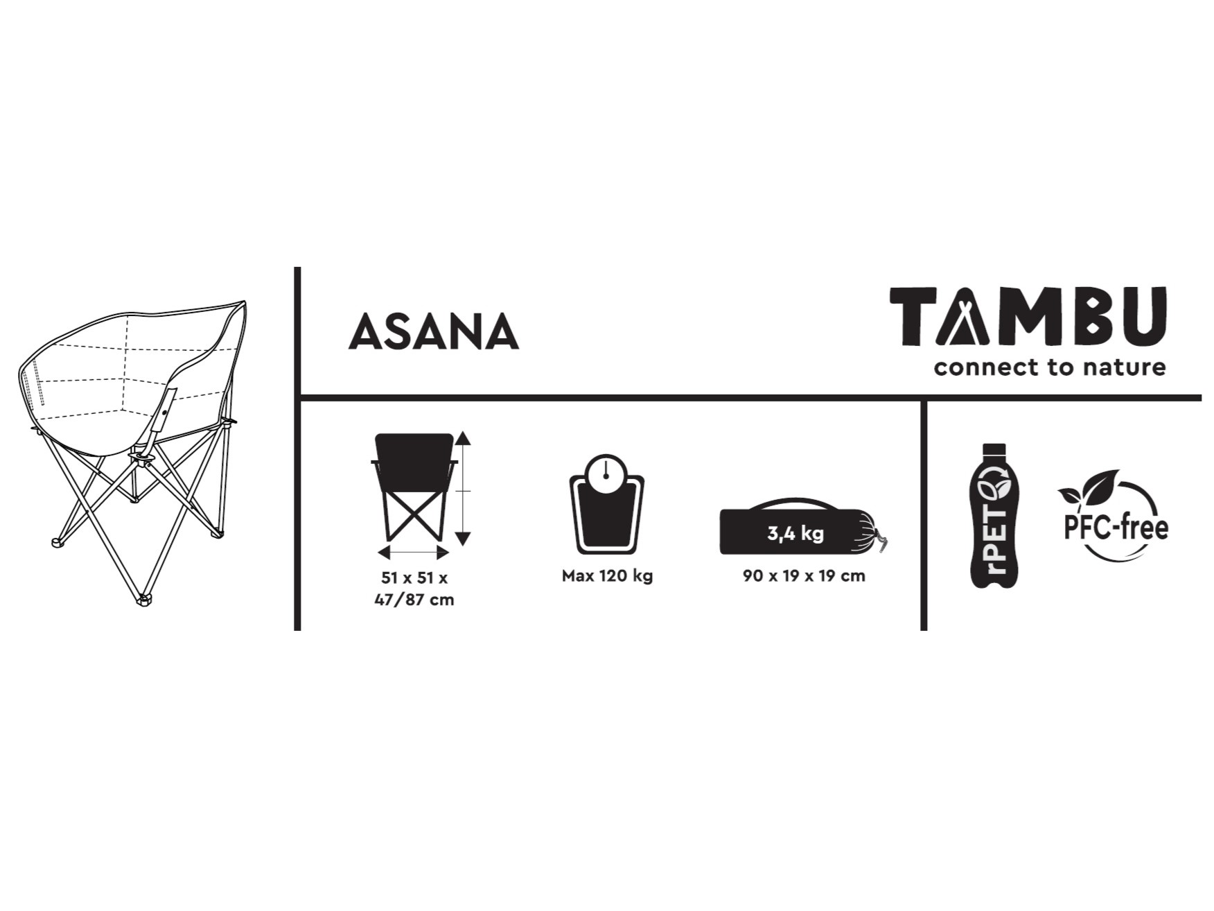 ASANA-retkituoli TAMBUlta yhdistää korkean istuinmukavuuden ja vastuulliset materiaalit. Se on täydellinen kumppani rentoihin hetkiin ulkona – olipa kyse leirintämatkasta, päivästä rannalla, kalareissusta tai rauhallisesta hetkestä puutarhassa. Tämä mukava kokoontaitettava tuoli tarjoaa luotettavaa käyttömukavuutta kestävällä materiaalivalinnalla.