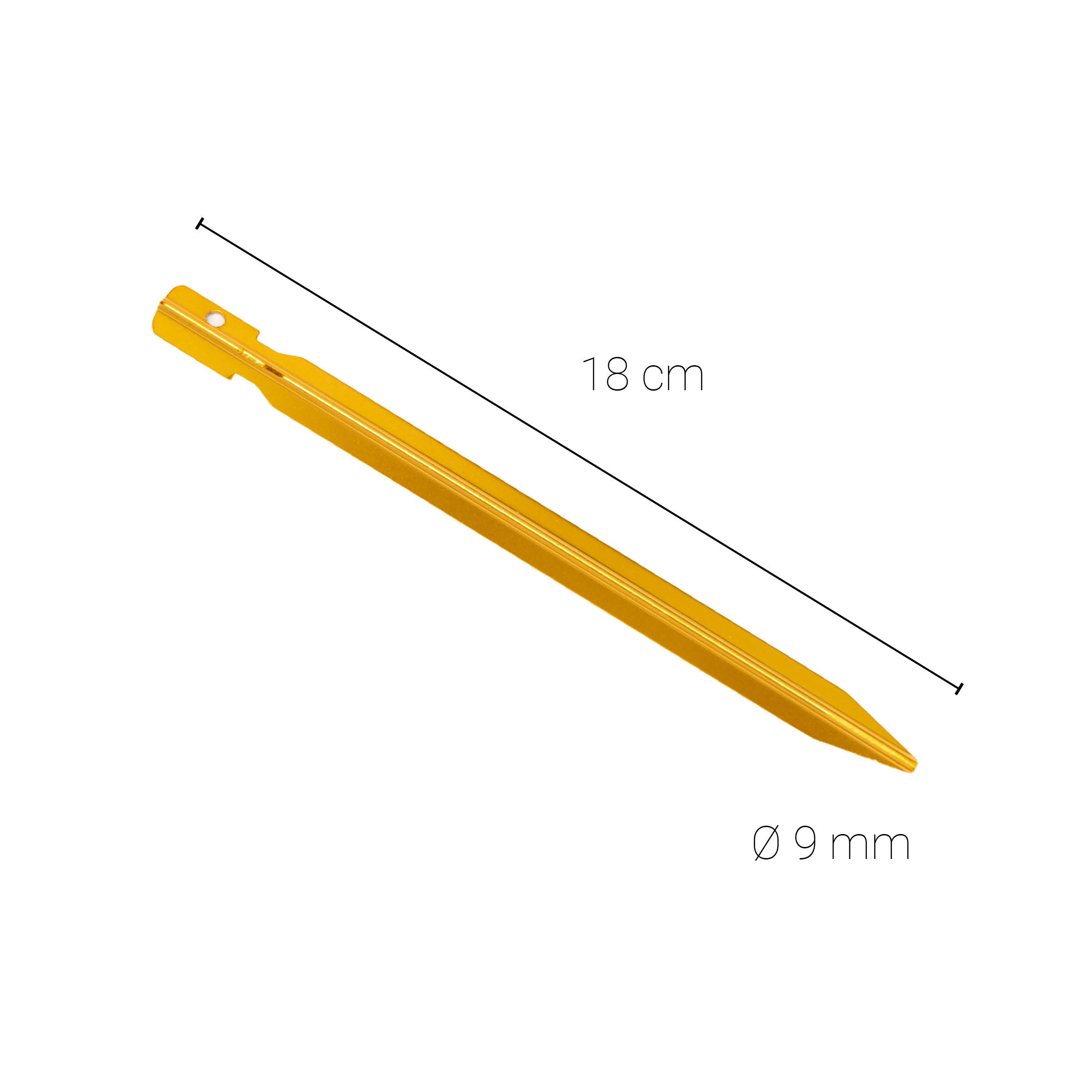 Siro mutta tukeva muoto mahdollistaa helpon maahan painamisen ja vaivattoman irrottamisen. Kullanvärinen viimeistely parantaa näkyvyyttä maastossa ja helpottaa kiilojen löytämistä myös korkeasta ruohosta tai vilkkaalta leirintäalueelta.