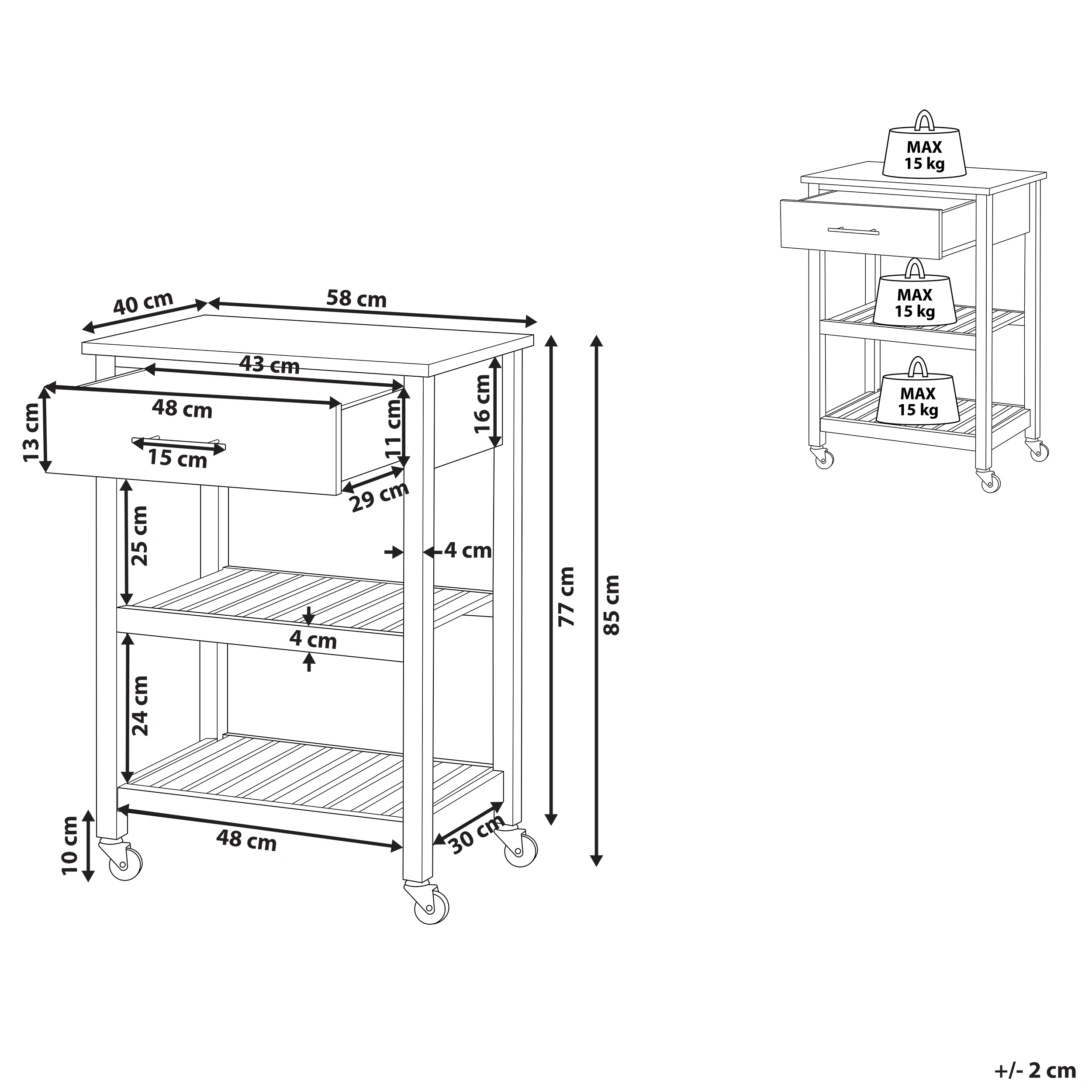 Ominaisuudet: Liikuteltava kääntyvien pyörien ansiosta, Klassista muotoilua modernilla otteella, Luotettava työn laatu, Tarkka viimeistely, Käytännöllinen säilytystila