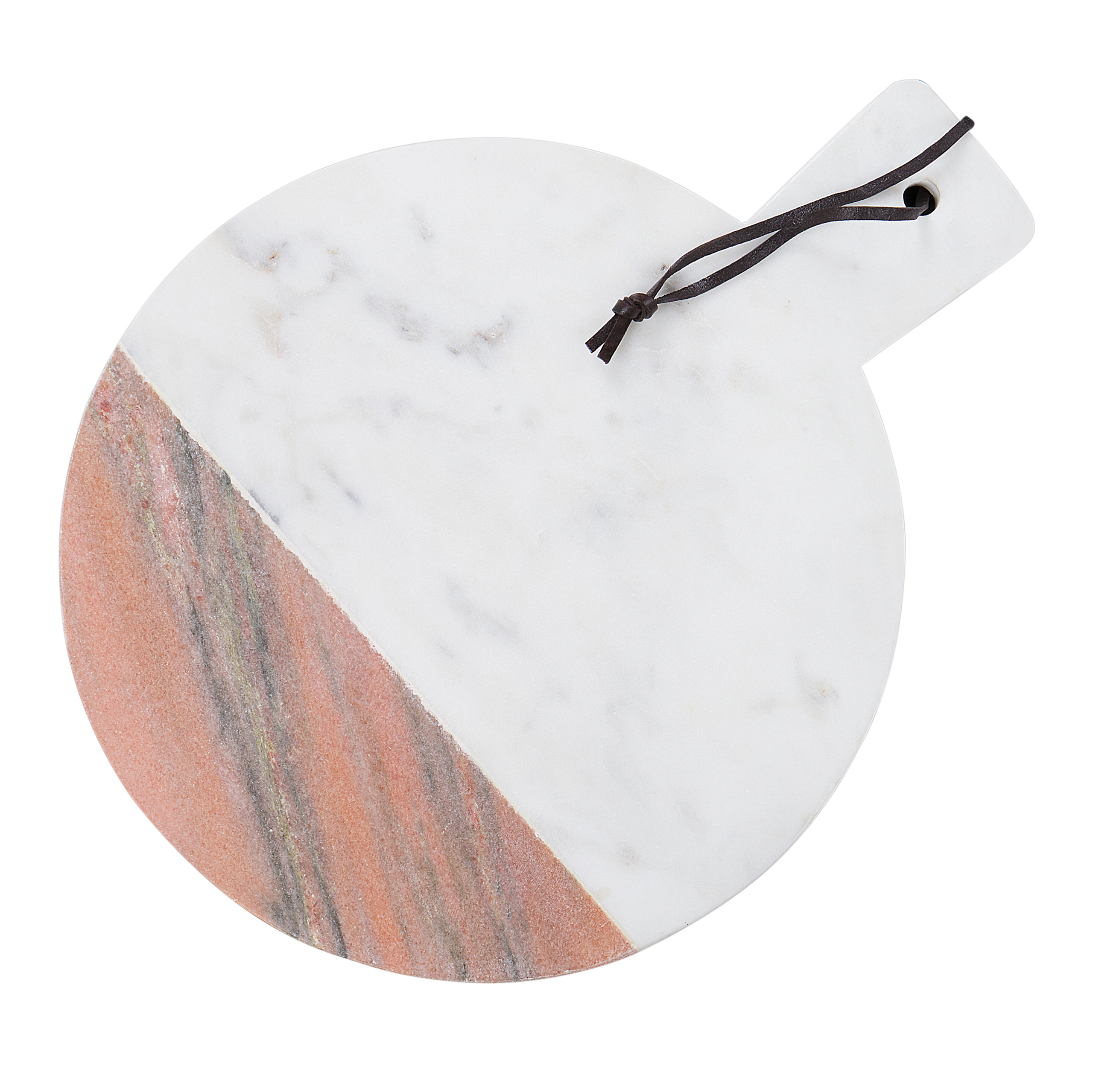 Moderni pyöreä tarjotin ripustuslenkillä. Kohota keittiösi ilmettä ja tarjoile erilaiset herkut tyylikkäästi tällä kauniilla tarjottimella. Se on valmistettu kestävästä marmorista, jonka ylellinen ilme täydentää mitä tahansa sisustusta. Tarjotin on helppo ripustaa tekonahkaisen lenkin avulla, ja se sopii ihanteellisesti sekä ruoan että juomien tarjoiluun.