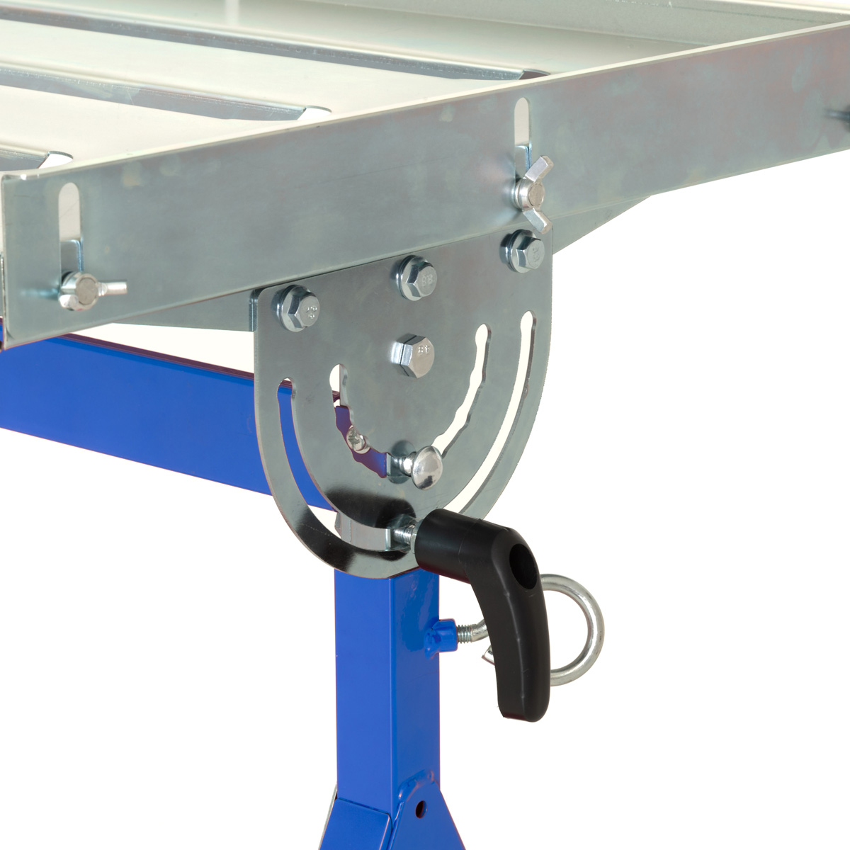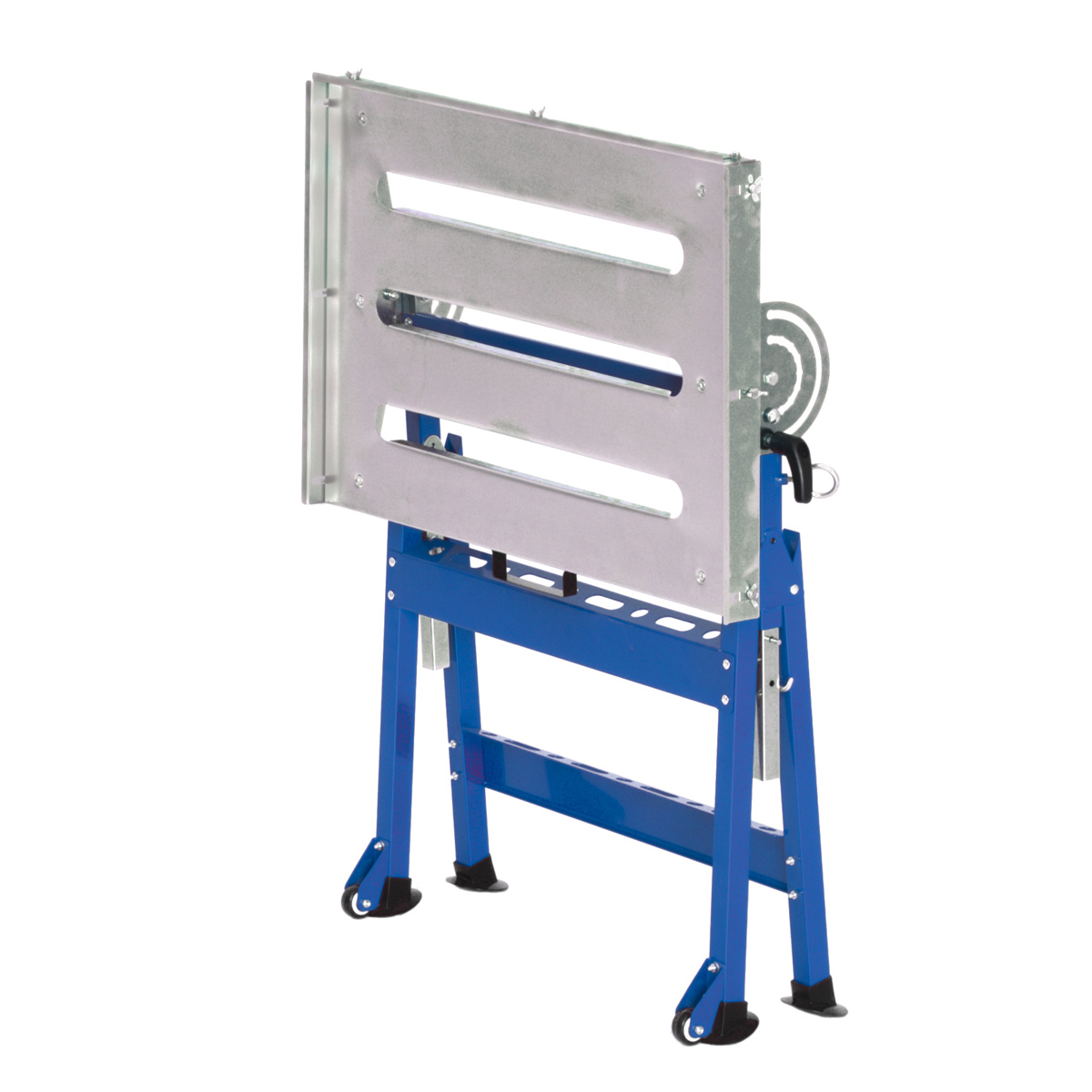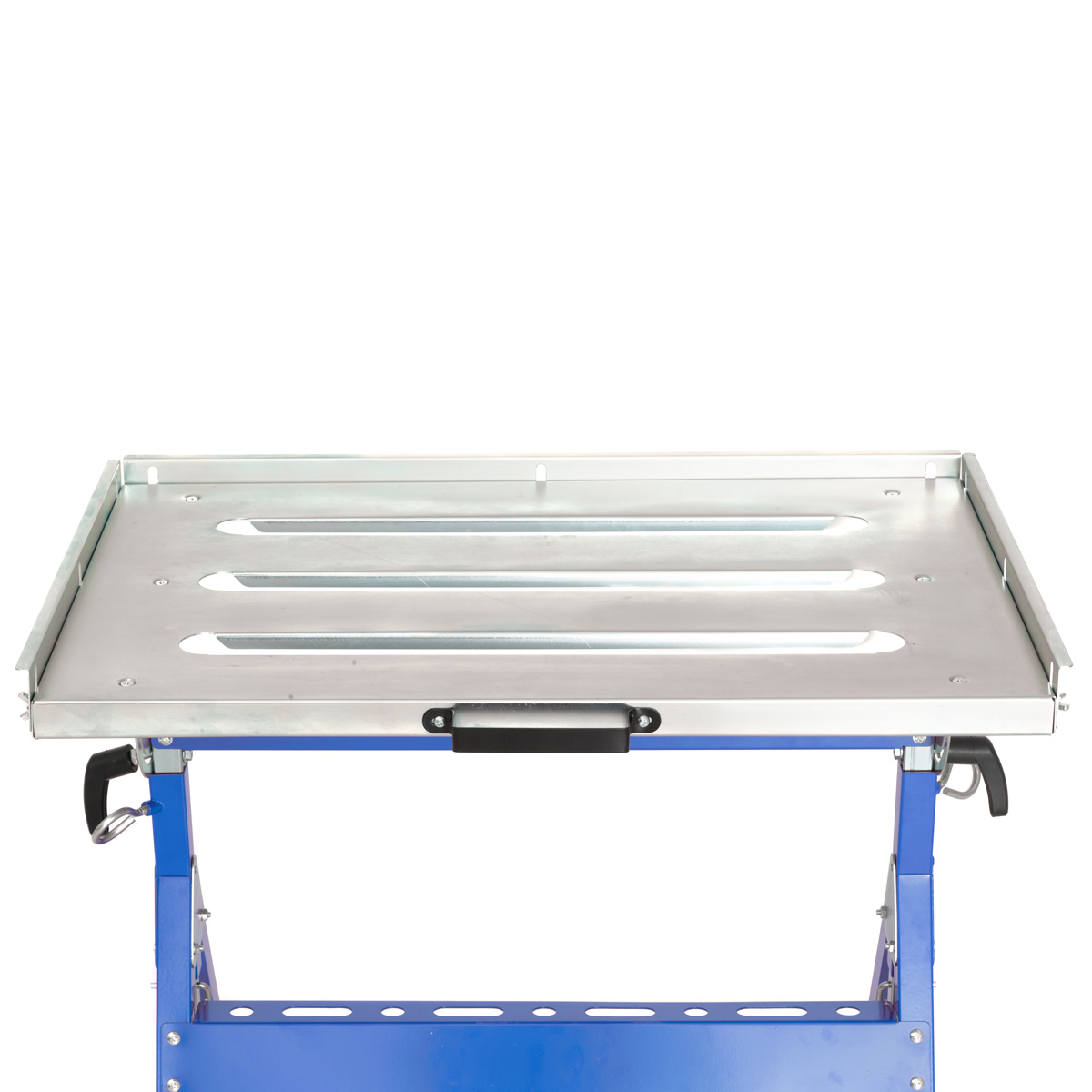 Kokoontaittuva ja säädettävä hitsauspöytä. Työtason korkeussäätö 780-930 mm, kulmasäätö 0-90-astetta. Taittuu pieneen tilaan ja on helppo ottaa mukaan ja säilyttää. Pienet pyörät ja vetokahva helpottavat siirtelyä. Työtaso galvanoitua terästä 760x510 mm. Kantavuus max. 150 kg.