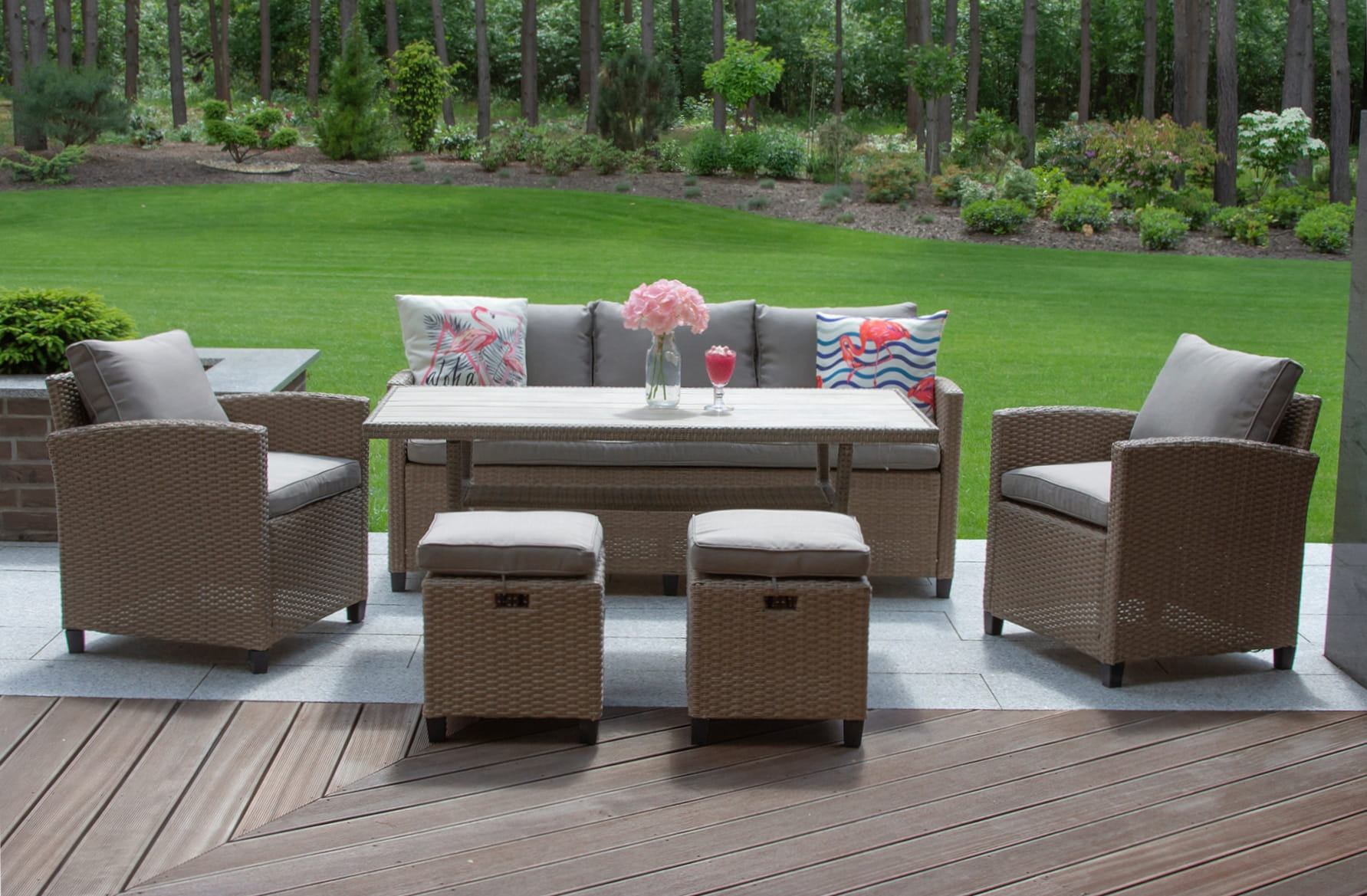 ilmastonmuutosten kestävyyden ansiosta se voidaan jättää ulos ja helppo puhdistaa teknorottinki tekee puutarhakalusteista pysyvästi kauniita vähällä vaivalla ja ajalla. Ne kiilsivät kuin uudet.