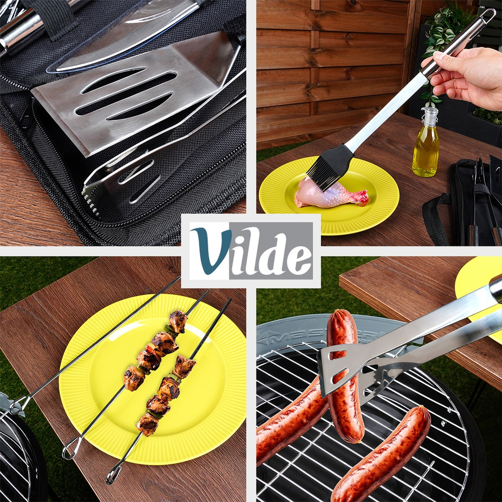 Setti välttämättömiä grillaus- tai leivontavälineitä. Tämä perussetti on uskomattoman hyödyllinen grillattaessa. Ne tekevät ruoan kääntelystä ja valmistamisesta helppoa. Täydellinen niille, jotka rakastavat grillausta. Tämä setti on loistava lahja rakkaille. Tarvikkeet on valmistettu tukevasti ja oikein käytettynä ne kestävät vuosia. Helppo puhdistaa ja käyttää. Alkuperäinen Vilde-tuote. Valmistettu eurooppalaisten standardien mukaisesti.
