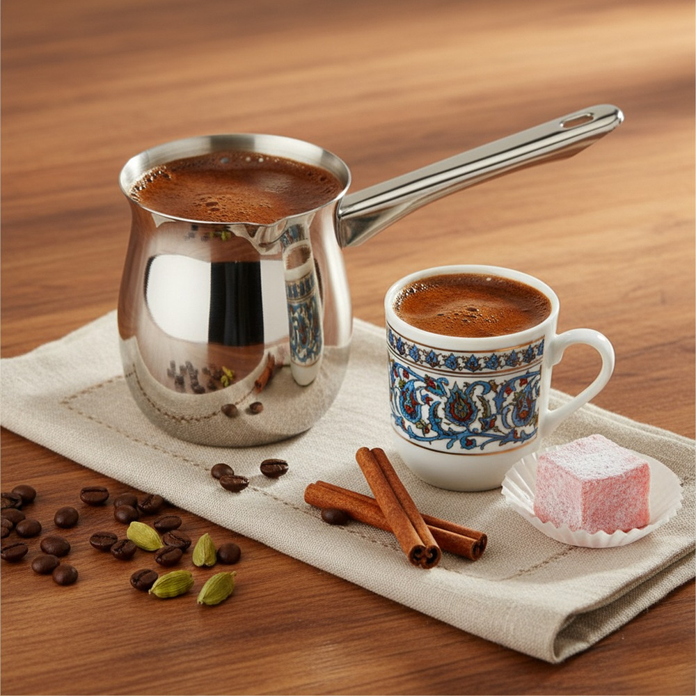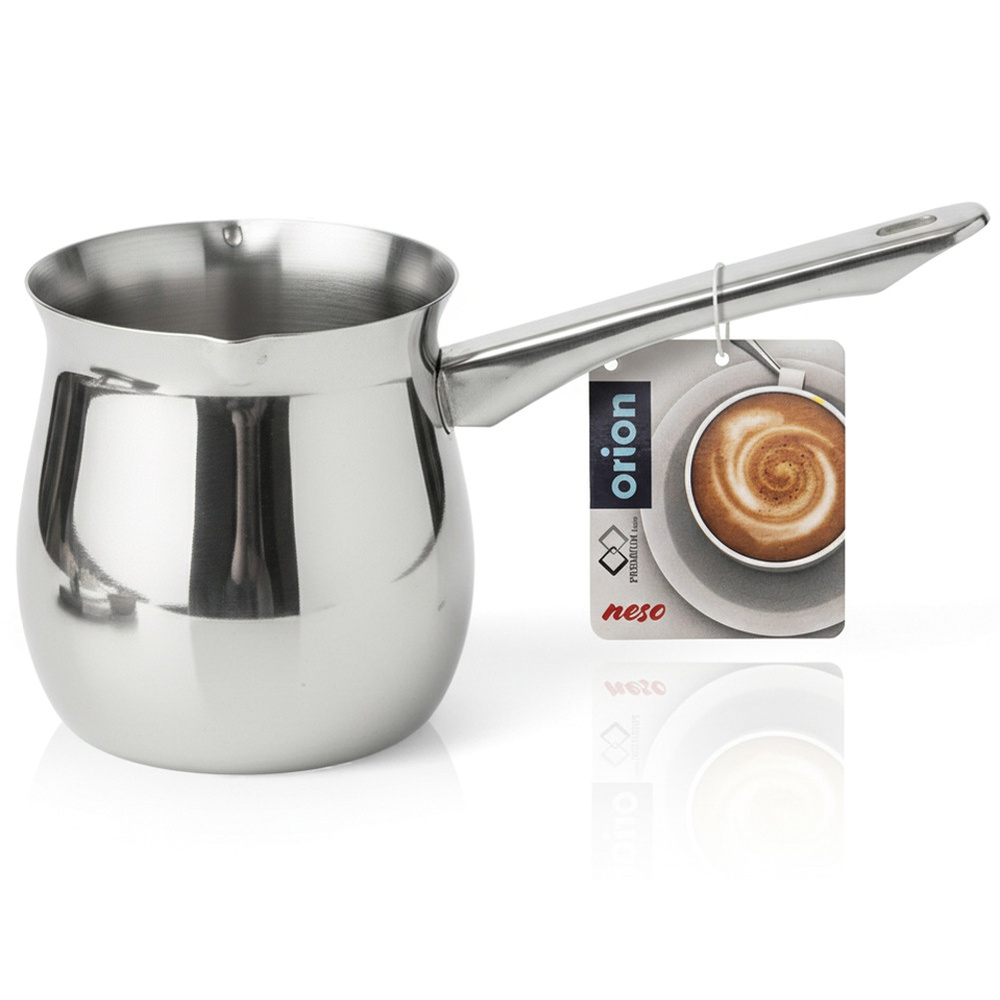 Tämä teräksinen turkkilainen kahvipannu on todellinen pakollinen hankinta jokaiselle turkkilaisen kahvin ystävälle. Saadaksesi ainutlaatuisen turkkilaisen kahvin maun, kaada jauhetut kahvipavut pannuun, lisää sitten vettä ja kuumenna miedolla lämmöllä. Toista tämä useita kertoja kiehumisen välttämiseksi. Alkuperäinen tuote tšekkiläiseltä Orion-merkiltä. Valmistettu eurooppalaisten standardien mukaisesti.