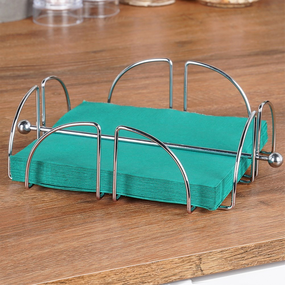Kestävistä materiaaleista valmistettu prässin sisältävä lautasliinateline. Oikein käytettynä se kestää useita vuosia. Sopii lautasliinojen kätevään säilytykseen pöydällä. Se pitää lautasliinat aina paikoillaan. Prässin ansiosta voimme käyttää sitä myös puutarhassa ilman, että meidän tarvitsee huolehtia lautasliinojen lentämisestä pois tuulenpuuskassa. Lautasliinateline näyttää erittäin tyylikkäältä. Valmistettu eurooppalaisten standardien mukaisesti.