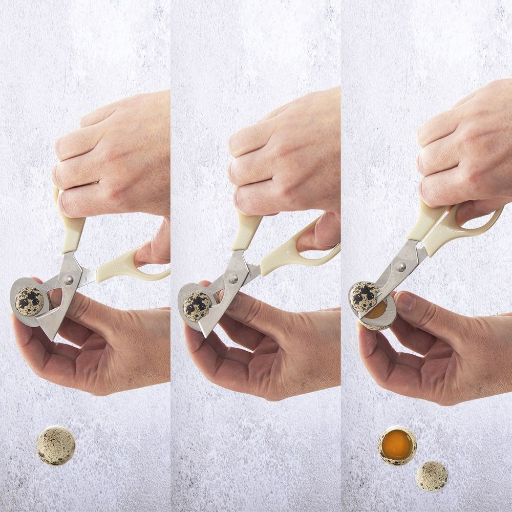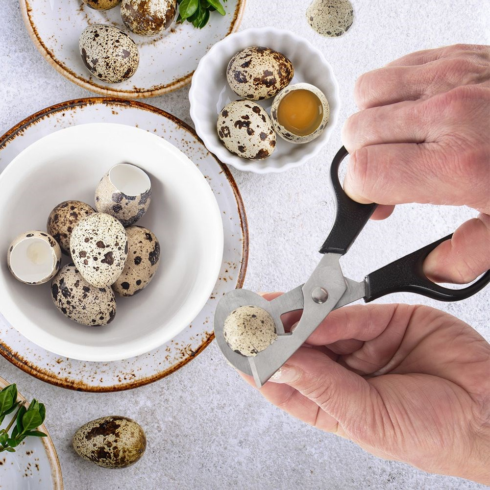 UNIVERSAL - Täydelliset viiriäisenmunille ja muille pienille munille. Niiden avulla voit valmistaa erilaisia ruokia, kuten munakokkelia tai paistettuja munia. Saksia voidaan käyttää myös yrttien, vihannesten ja muiden pienempien ainesten leikkaamiseen.