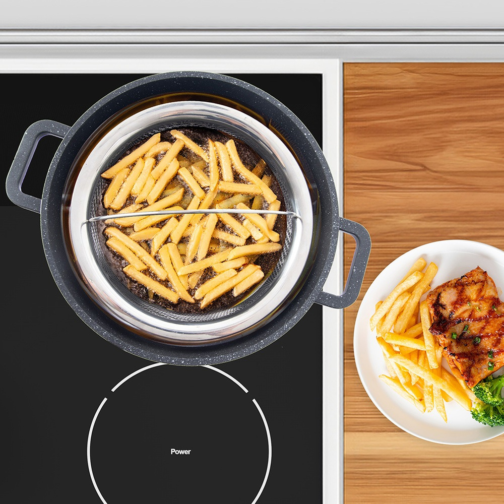 Yleiskäyttöinen - Erityisesti suositellaan ranskanperunoiden, sipulirenkaiden, grillattujen kasvisten, nugettien ja donitsien paistamiseen. Korin avulla voit myös valuttaa pastaa ja kasviksia.