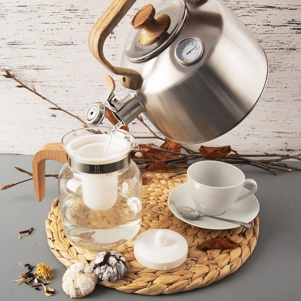 Teräksinen viheltävä vedenkeitin lämpömittarilla 3,2 l