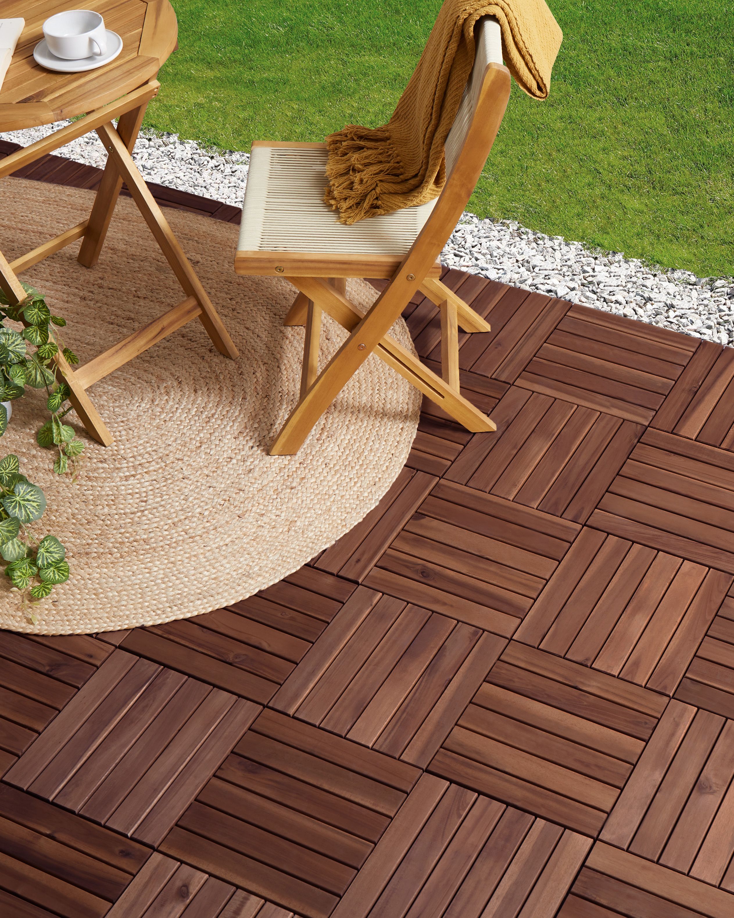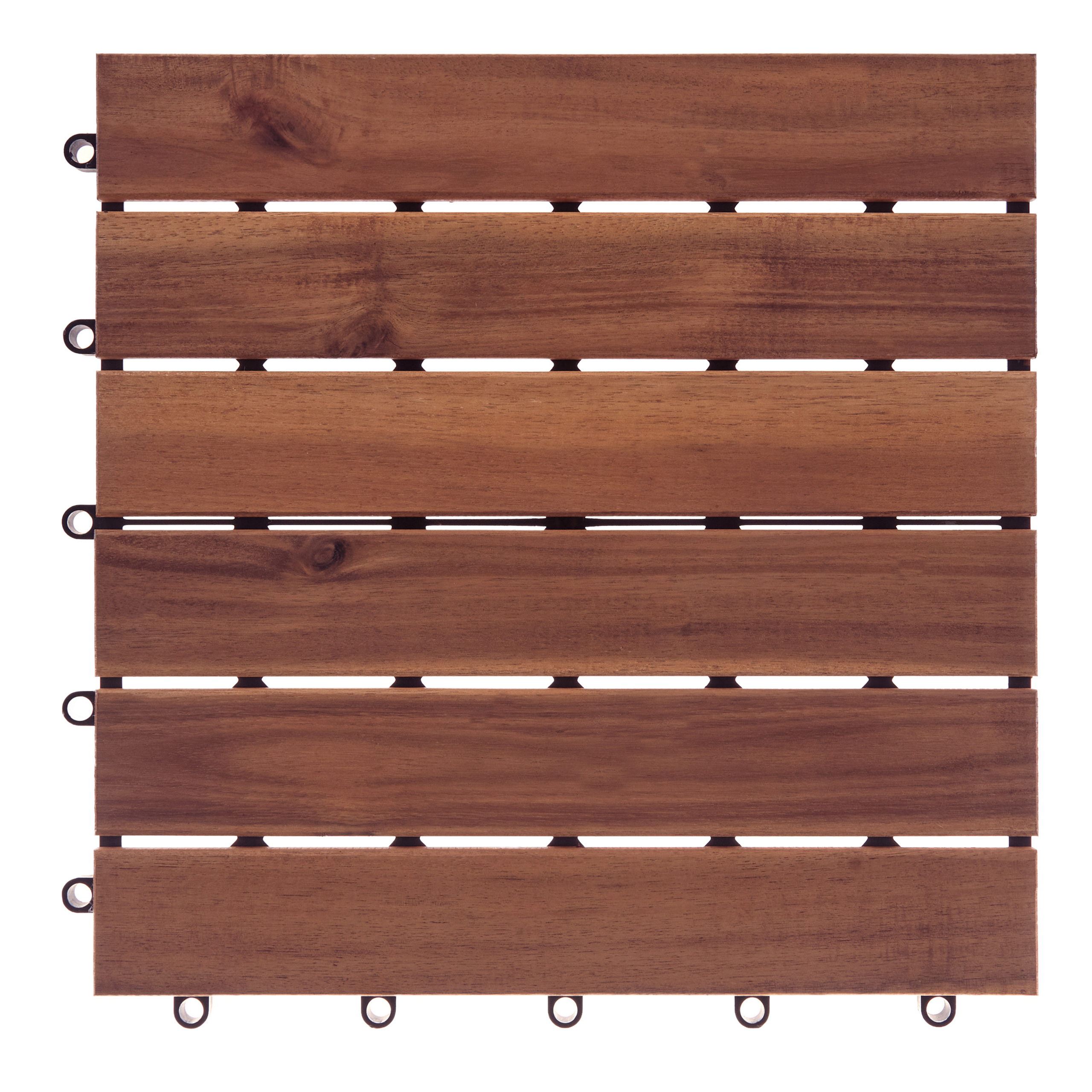 Yhteen napsautettavat lattialaatat ulkokäyttöön. Kohota ulkotilaasi näiden monipuolisten terassilaattojen avulla. Laatoissa on kätevä plug-in-kiinnitys, joten ne on helppo asentaa ja vaivaton sovittaa uudelleen tilaan sopivaksi. Sertifioidusta akaasiapuusta valmistetuissa laatoissa on vankka muovitausta, ja ne ovat säänkestäviä sekä takaavat pitkäikäisen kestävyyden. Puun rikas, ruskea sävy korostaa monenlaisia ympäristöjä.
